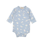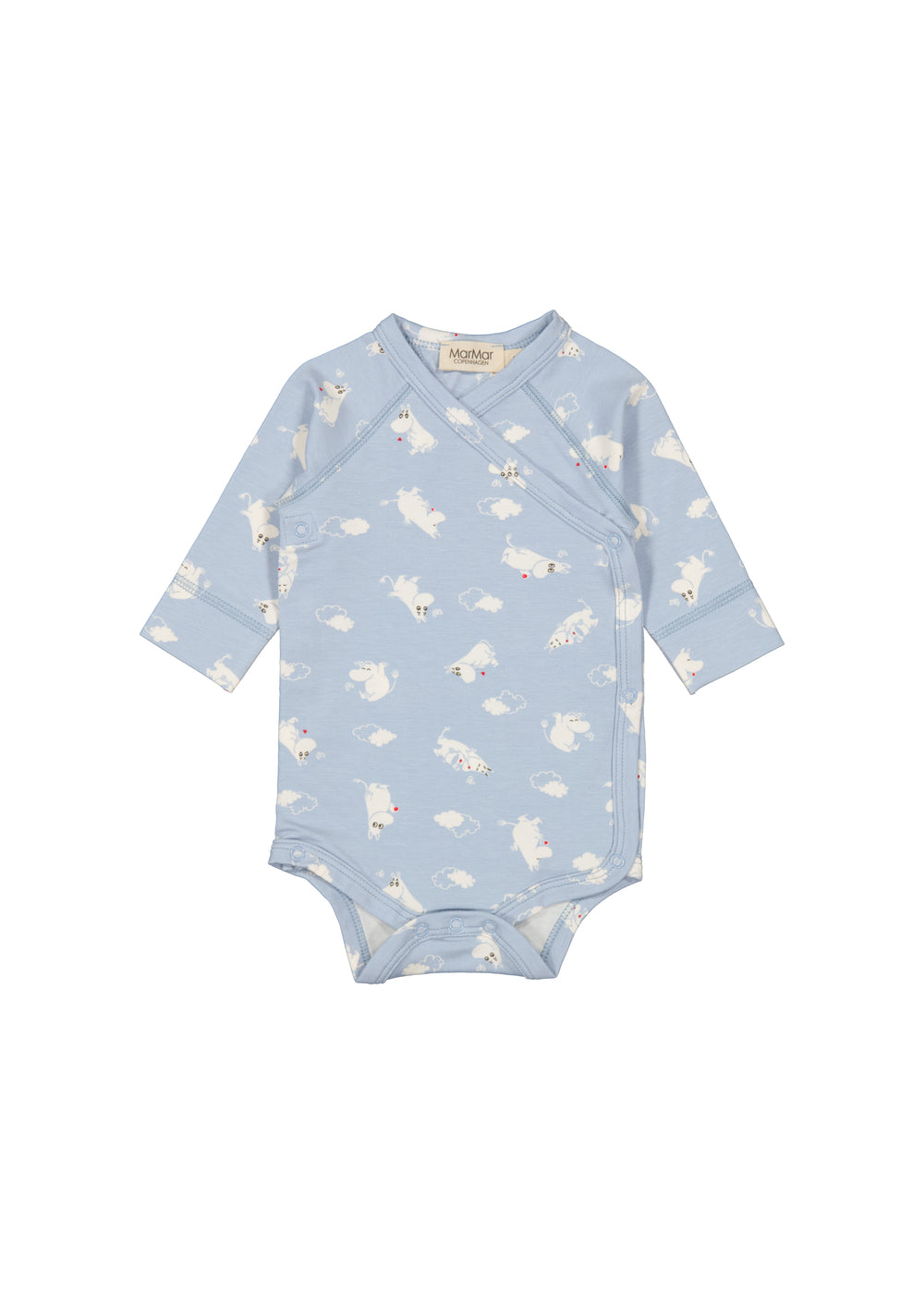 Long-sleeved bodystocking for newborns with a wrap-around closure and a cute Moomin print. The bodystocking closes with snaps and is soft, stretchy and comfortable to wear.