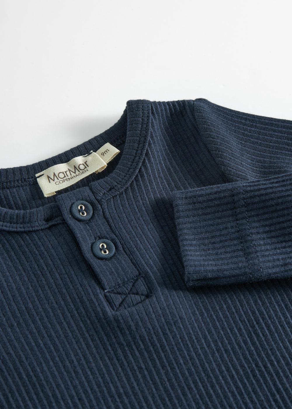 Long-sleeved baby modal bodystocking with placket button closure, which is closed with snaps between the legs for easy diaper changes. The bodystocking is ribbed, soft, holds its shape and color and has elastane in it, which makes it stretchy and comfortable to wear.