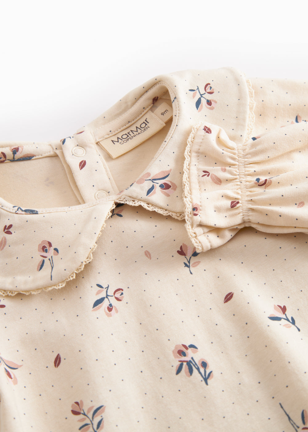 Langärmet baby bodystocking with floral print and collar