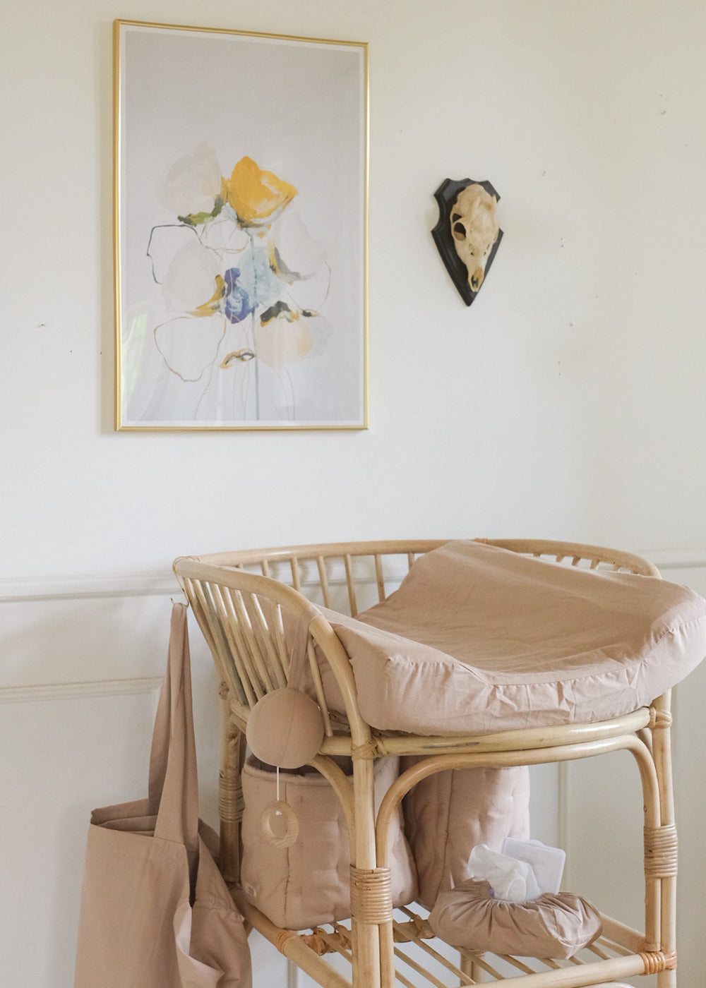 Cover for changing pad, with elastic edge at the bottom, so it is easy to take on and off. Measures H:9cm x W:50cm x L:64cm