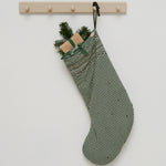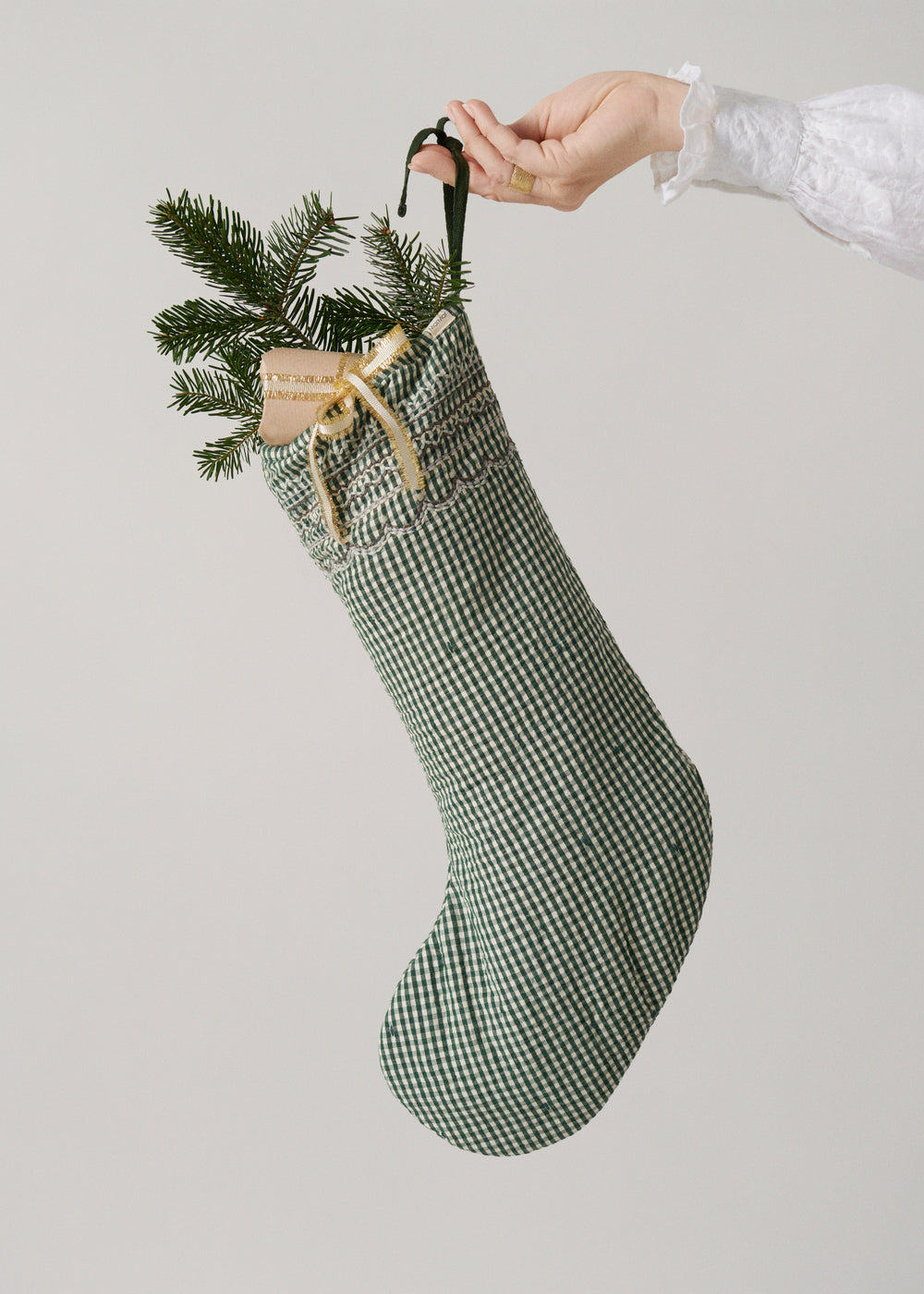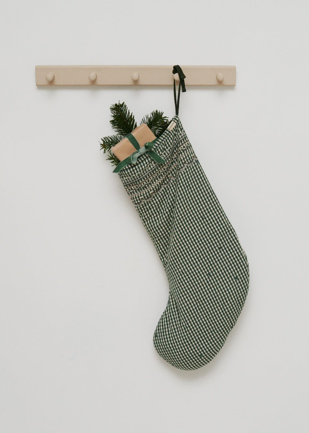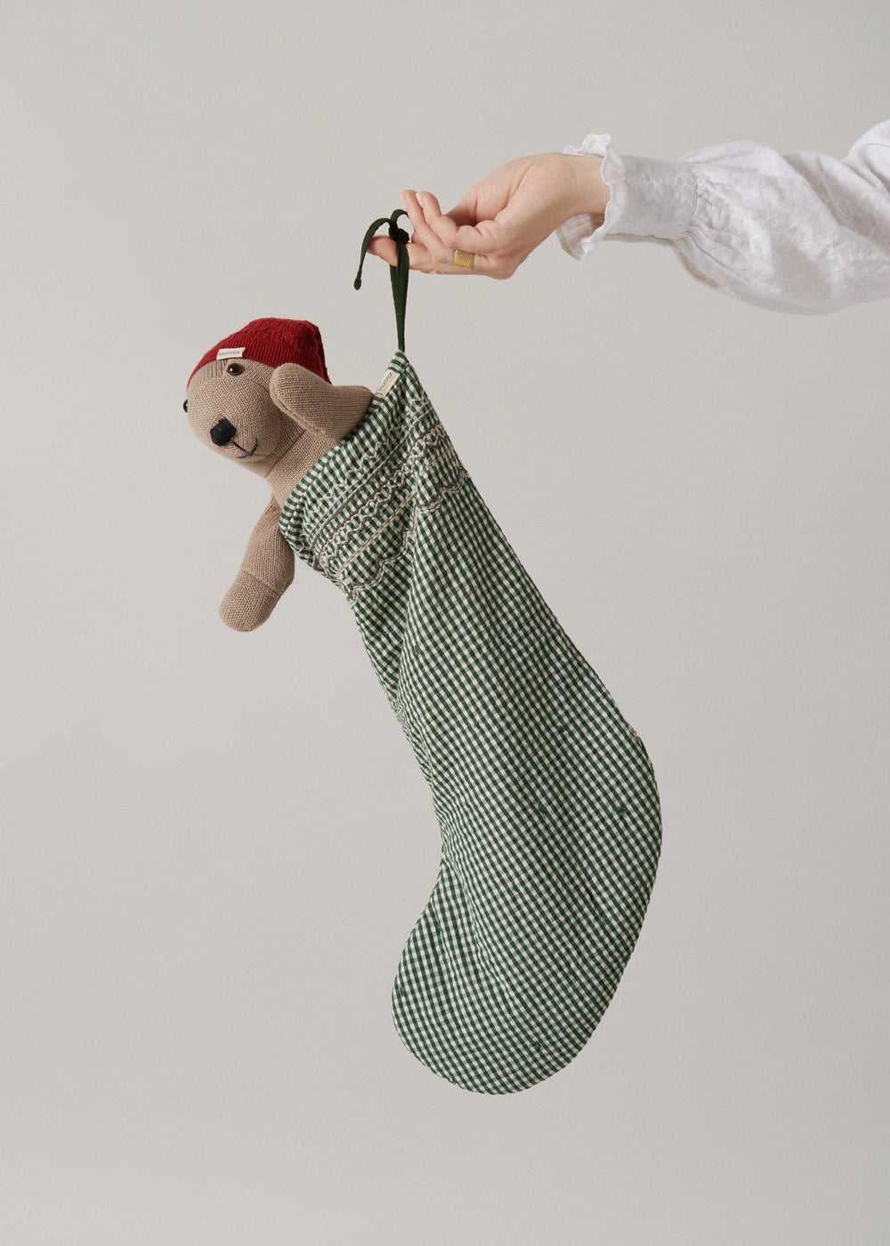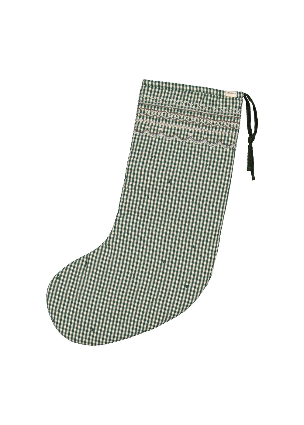 Christmas stocking with one large compartment and a practical handle at the top so it can be easily hung up.