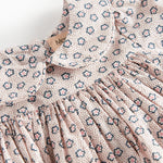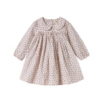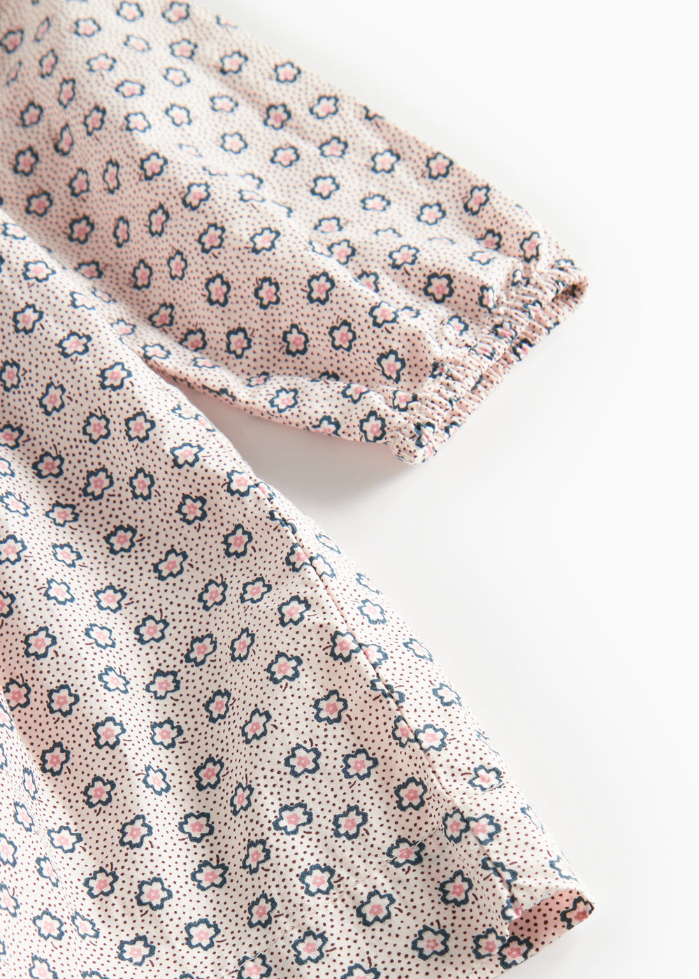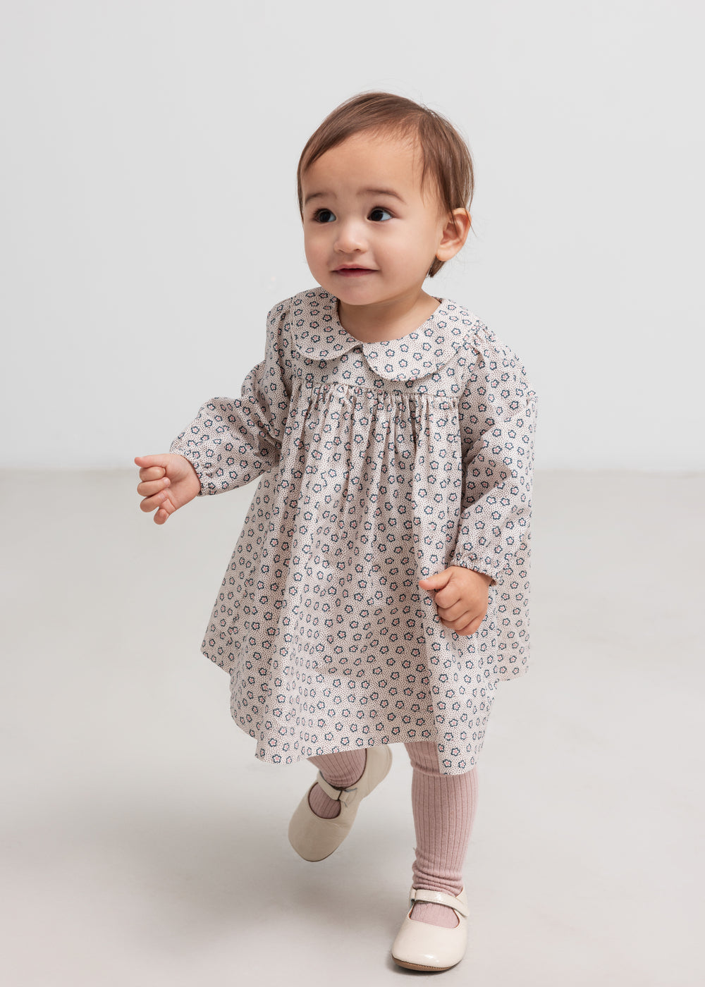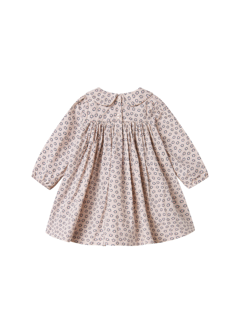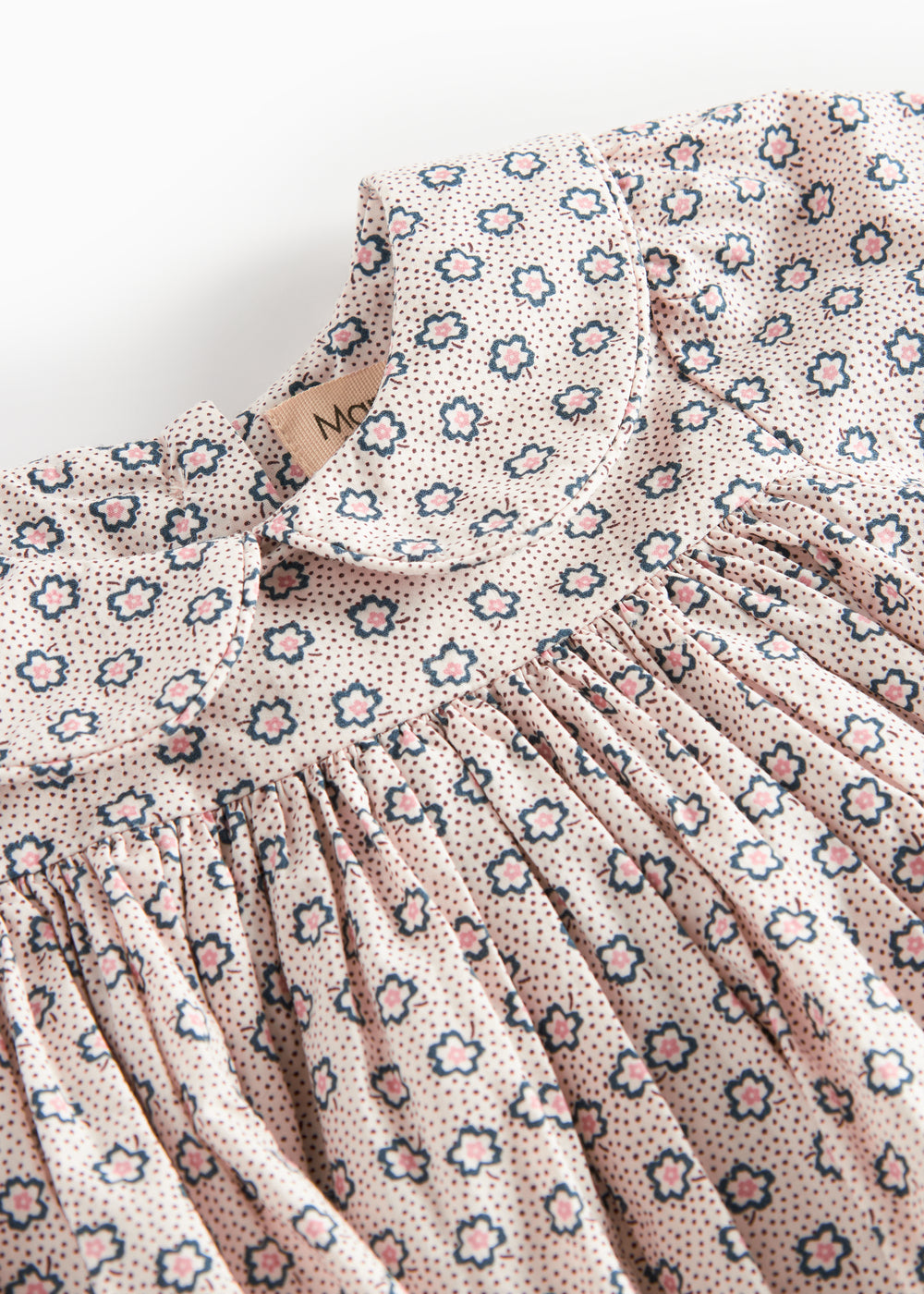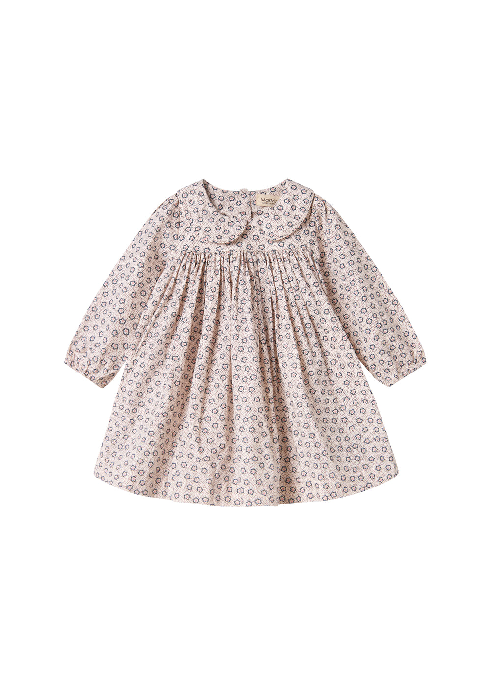 Long-sleeved and loose-fitting dress for the little ones with a fine hand-drawn floral print, good fit, classic small collar and elastic at the wrists. The dress closes with buttons at the back and the length of the dress goes above the knees. The dress is both comfortable, light and airy to wear.
