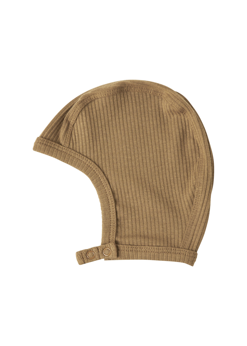 Nice little baby helmet that closes with a snap button in two lengths. The hat is ribbed, soft, stretchy and comfortable to wear.