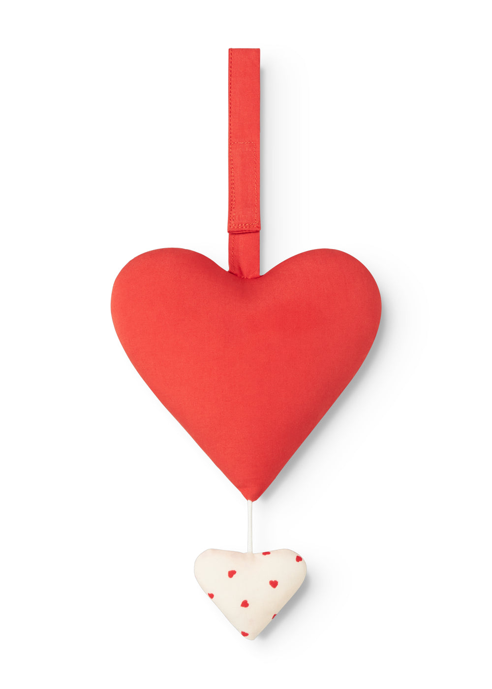Musical alarm clock with two beautiful hearts that play Brahm's Lullaby for your child when you pull the string. The alarm clock has a Velcro closure, so you can easily hang it on the bed or changing table. The alarm clock measures 28 cm. in circumference.