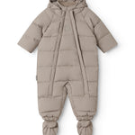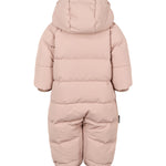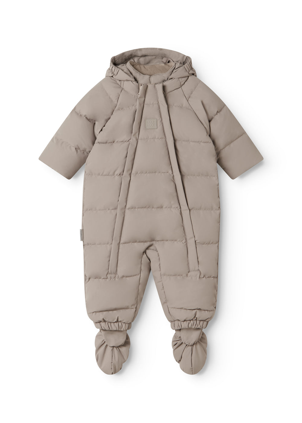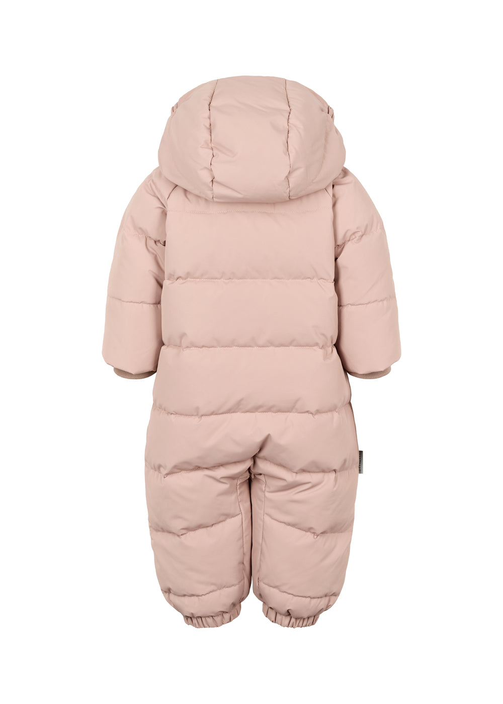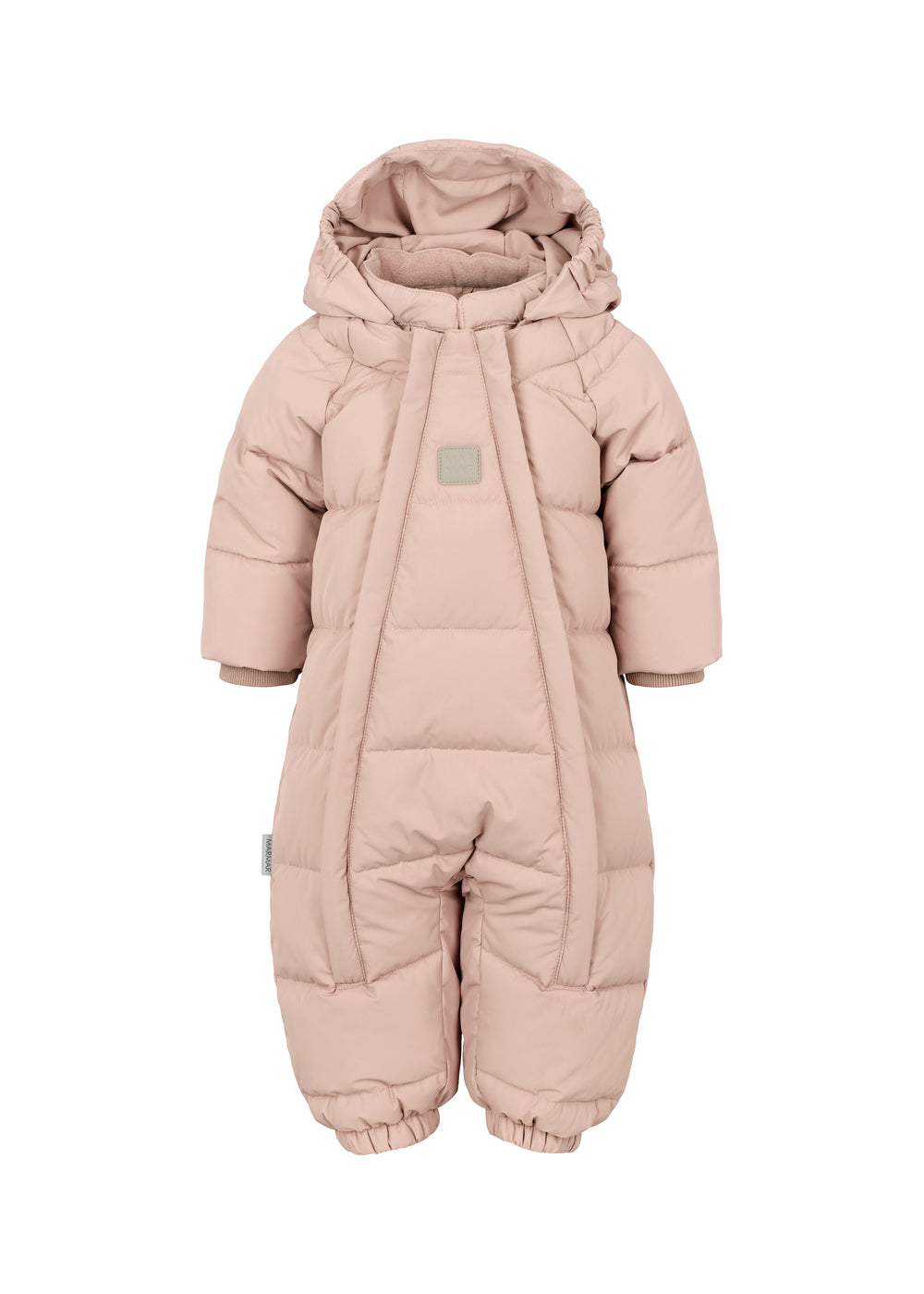 Down suit for the little ones designed to keep the child warm and comfortable during the cold months. The down suit has a removable hood and detachable booties, and closes with a practical double zipper at the front, making it easy to put on and take off. The down suit fits tightly around the wrists and feet, so no cold gets in. The down suit is both wind and waterproof, making it ideal for both everyday use and outdoor activities in cold weather.