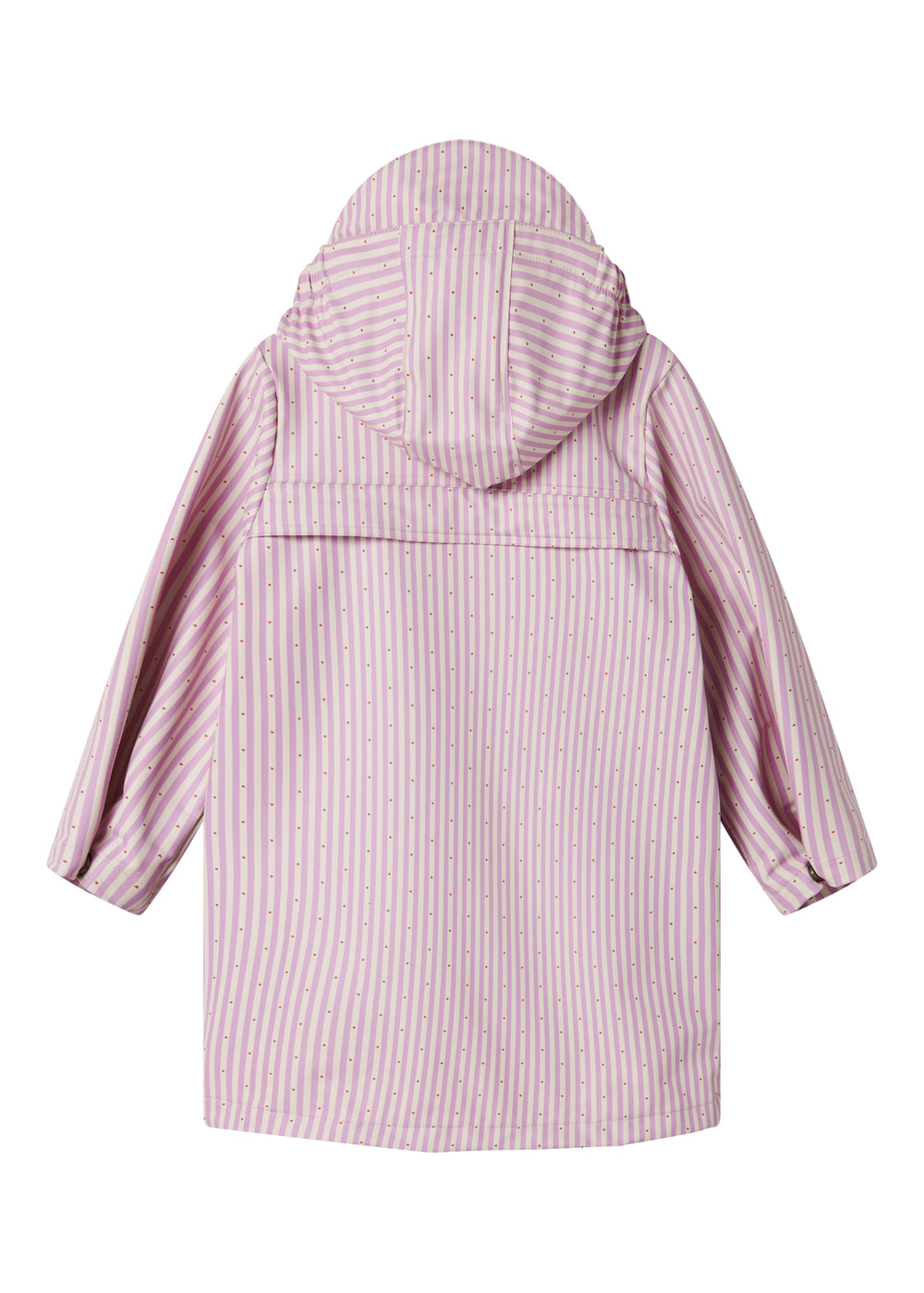 Lyserød stribet regnjakke til børn med hætte og knapper