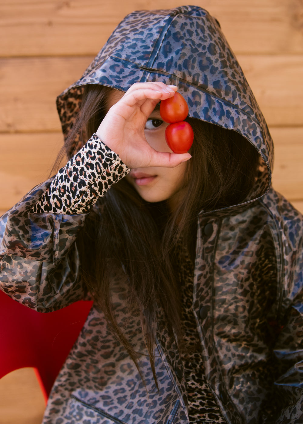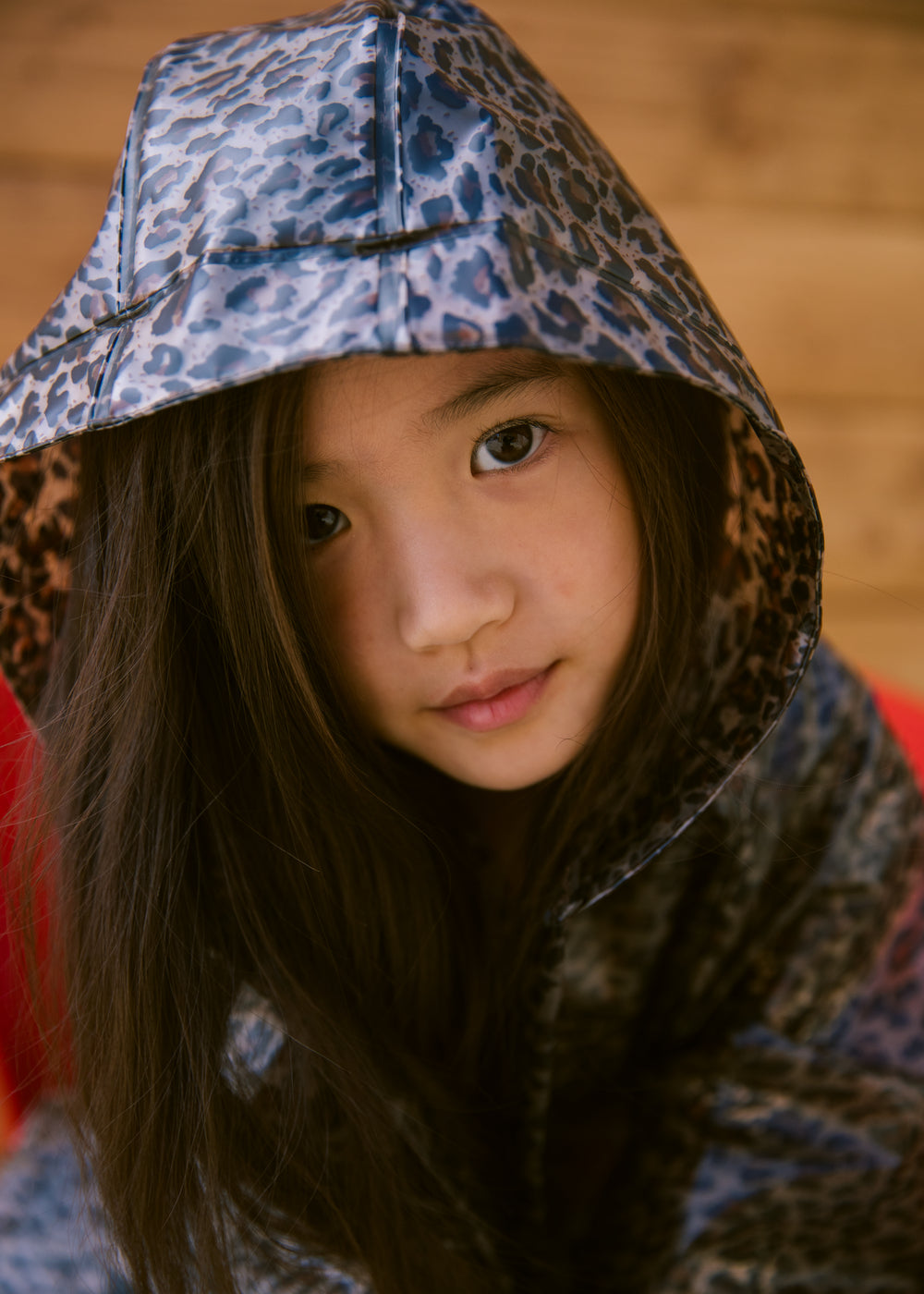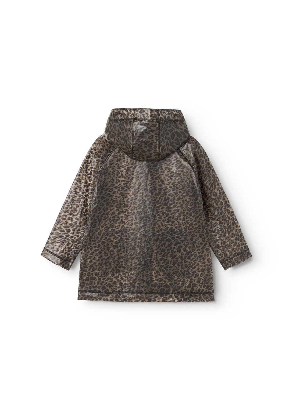 Transparent rain jacket in leopard print with hood, press stud closure and two large front pockets. The rain jacket is waterproof and has a water column pressure of 10,000 mm.