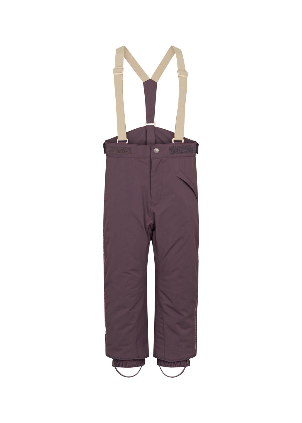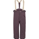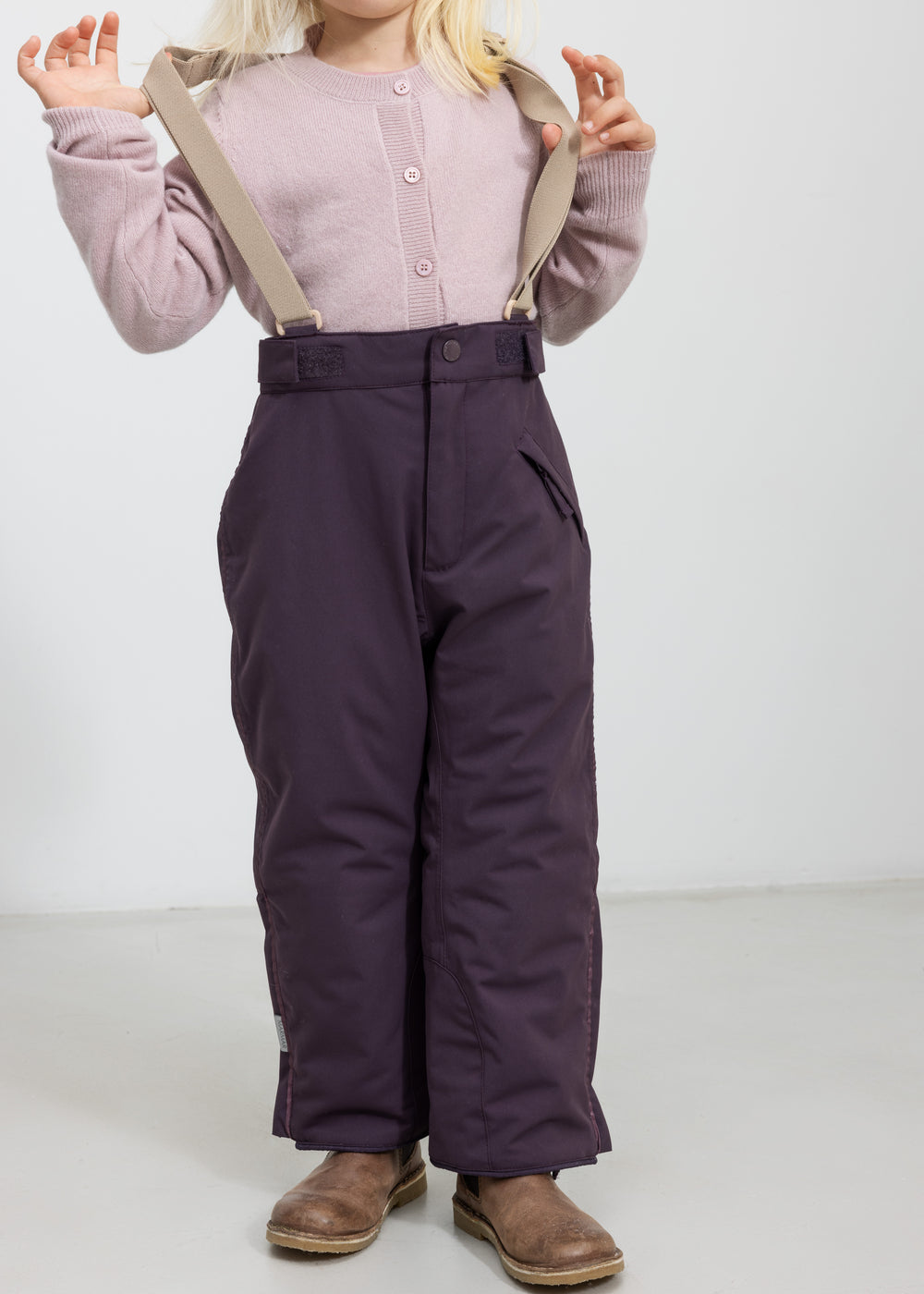 Practical winter overpants for children with removable and adjustable elastic suspenders. The overpants are light and soft on the body with one zipper pocket in the front and a zipper and press stud closure. The lining is soft and smooth and makes it easy for the child to take them on and off themselves. The overpants are perfect winter outerwear in durable material and with thermolite insulation, which ensures a warm and temperate body temperature.