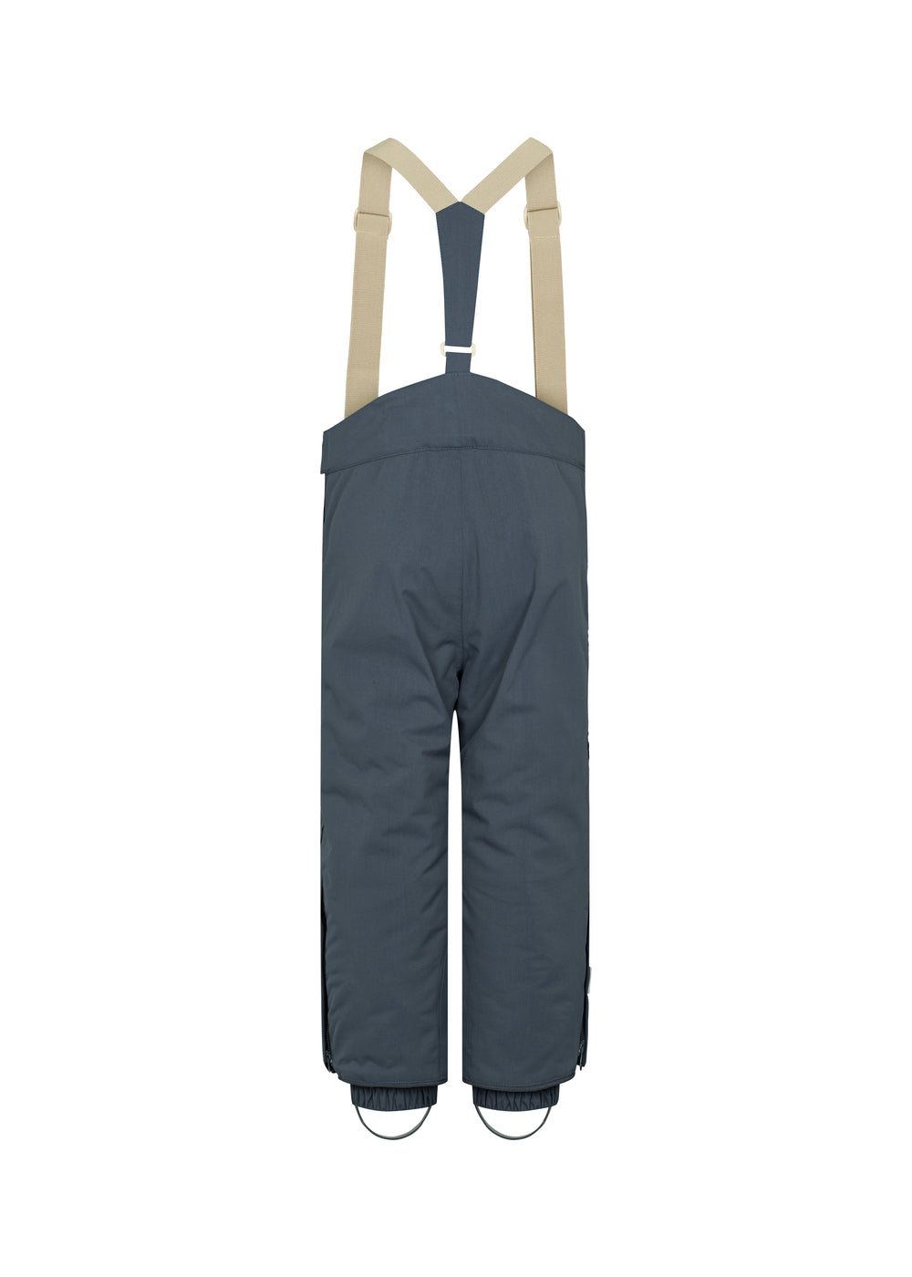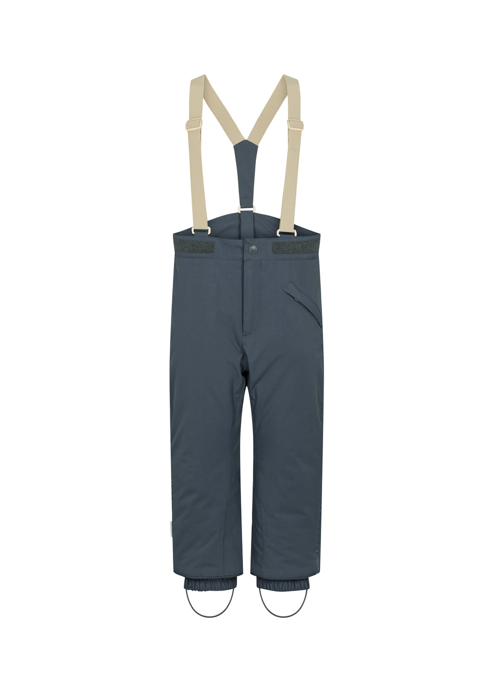 Practical winter overpants for children with removable and adjustable elastic suspenders. The overpants are light and soft on the body with one zipper pocket in the front and a zipper and press stud closure. The lining is soft and smooth and makes it easy for the child to take them on and off themselves. The overpants are perfect winter outerwear in durable material and with thermolite insulation, which ensures a warm and temperate body temperature.