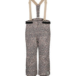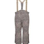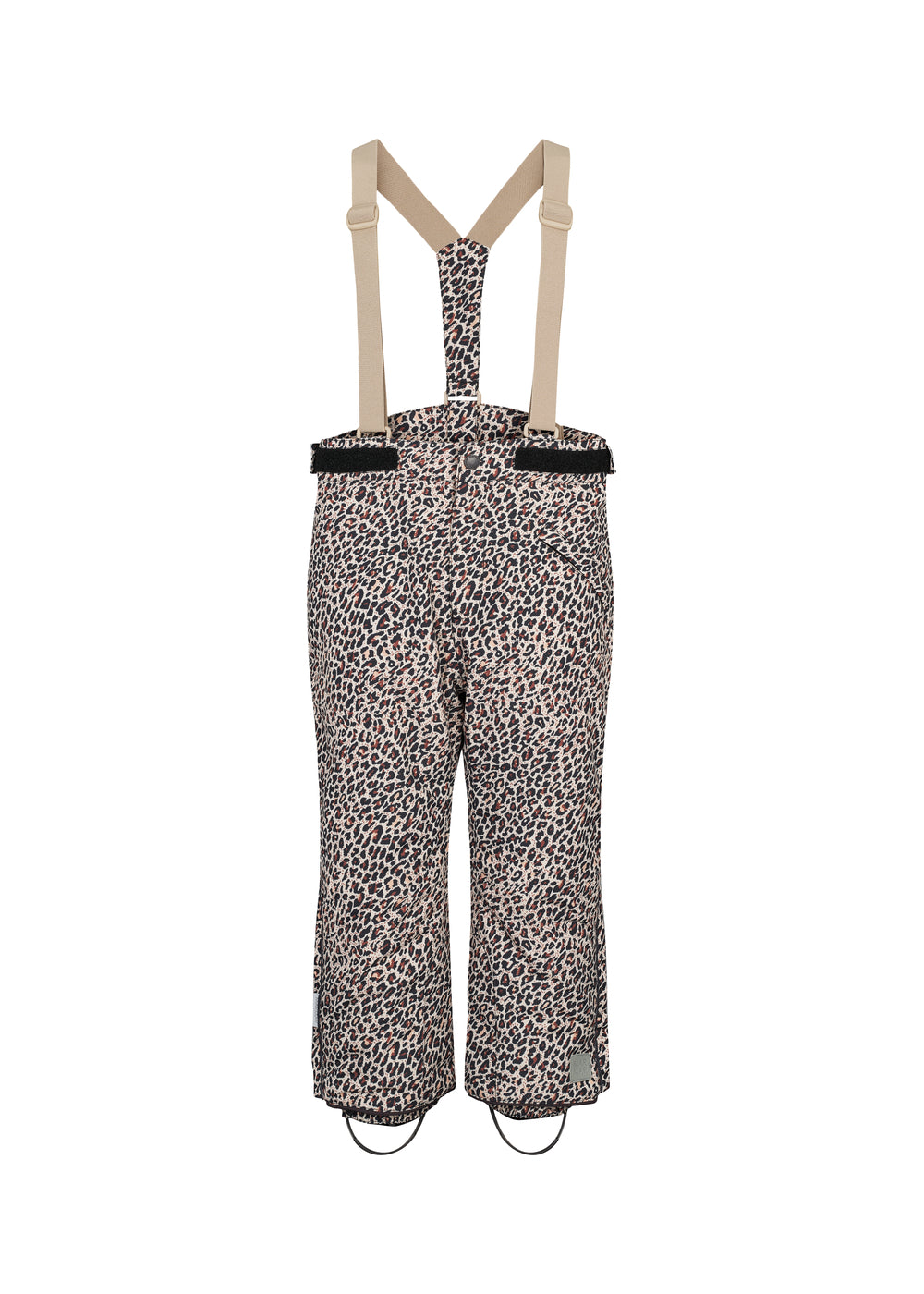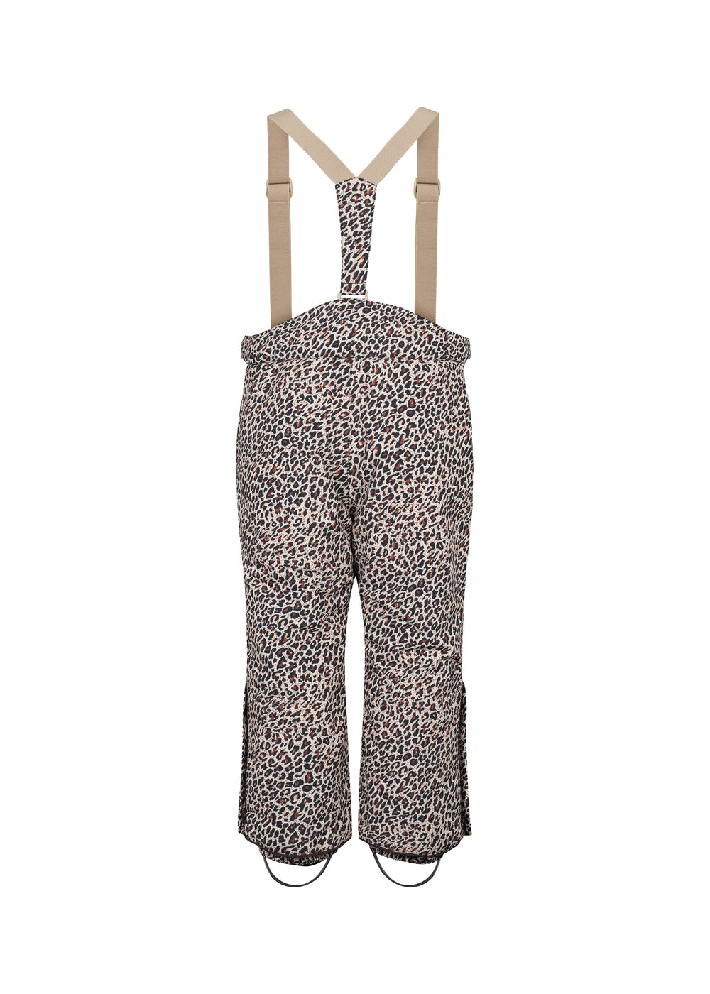 Practical winter overpants for children in leopard print with removable and adjustable elastic suspenders. The overpants are light and soft on the body with one zipper pocket in the front and a zipper and press stud closure. The lining is soft and smooth and makes it easy for the child to take them on and off themselves. The overpants are perfect winter outerwear in durable material and with thermolite insulation, which ensures a warm and temperate body temperature.