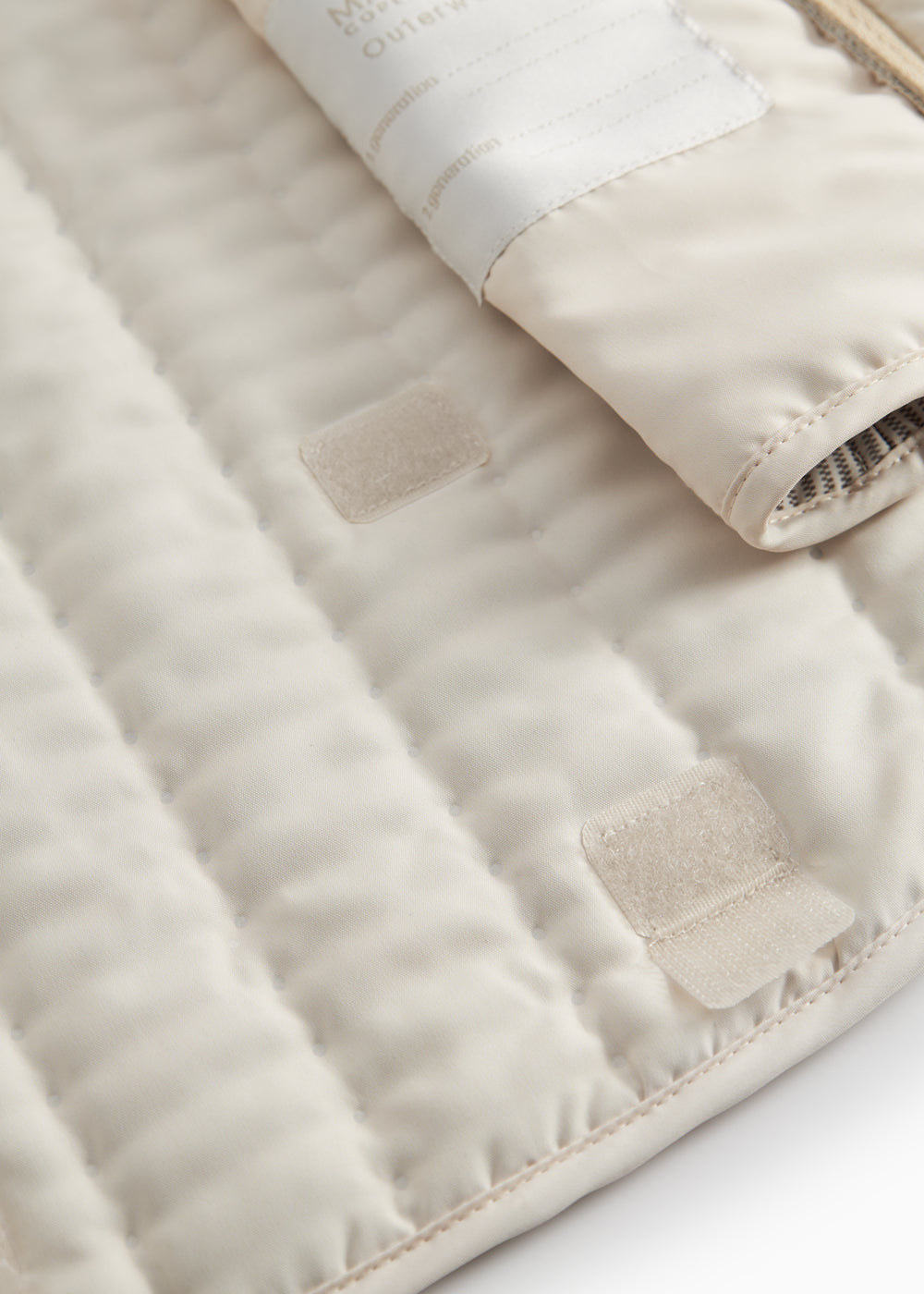 Thermal jacket for children with a slim fit and side pockets. The thermal jacket can be folded up at the back using small Velcro details if you don't want it to be longer. The thermal jacket closes with a zipper at the front and works perfectly as warm and practical transitional clothing.