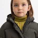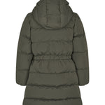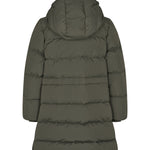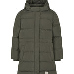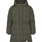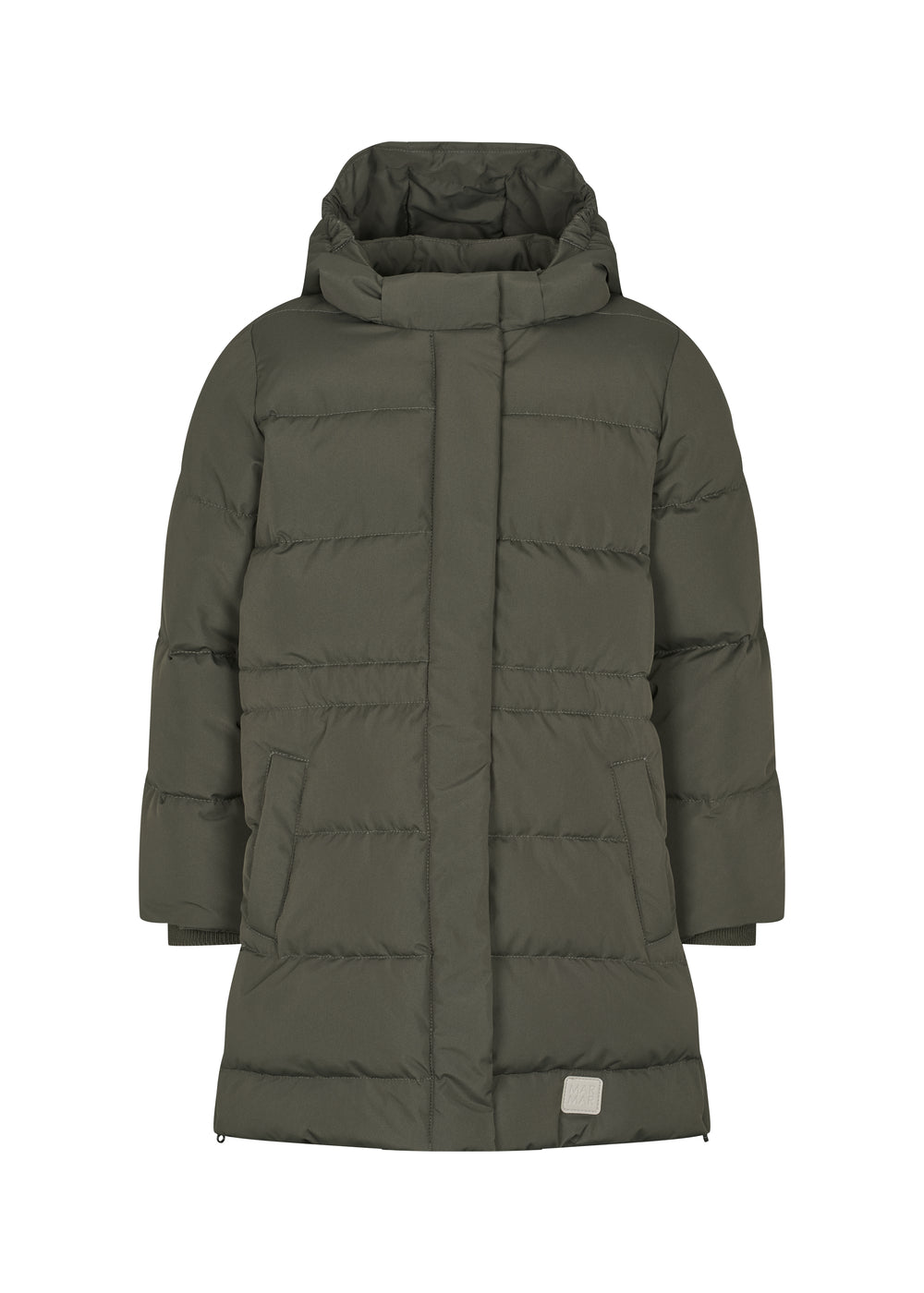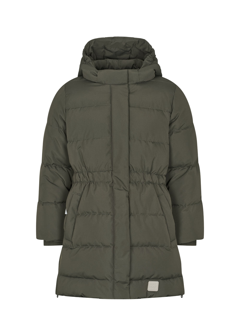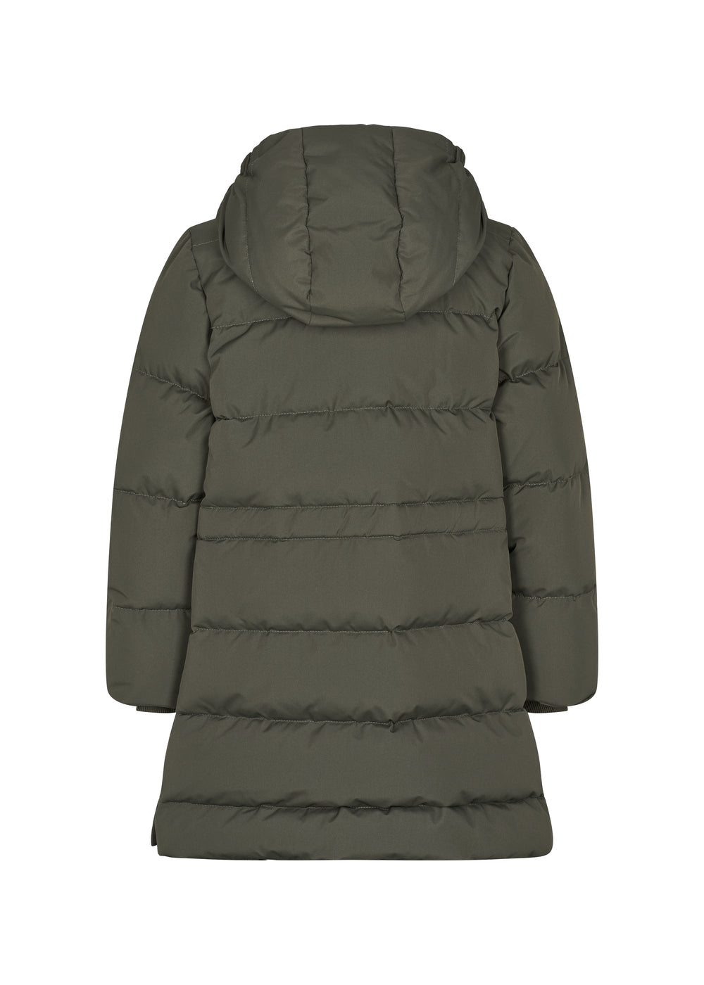 Long and comfortable down jacket designed to keep your child warm and comfortable during the cold months. The jacket has a longer fit that provides extra protection against cold and wind. The down coat has elastic on the inside that can be tightened at the waist for a more feminine look. The jacket has two slanted side pockets where hands can be kept warm or small items can be stored. The down jacket has a removable hood, zippers on the sides that can be opened to increase freedom of movement, making the jacket ideal for active play and outdoor adventures. The down jacket closes with a hidden zipper closure and press studs at the front that provide extra protection against cold and wind.