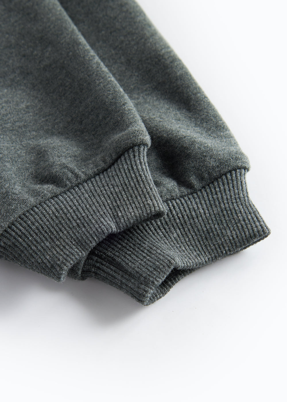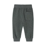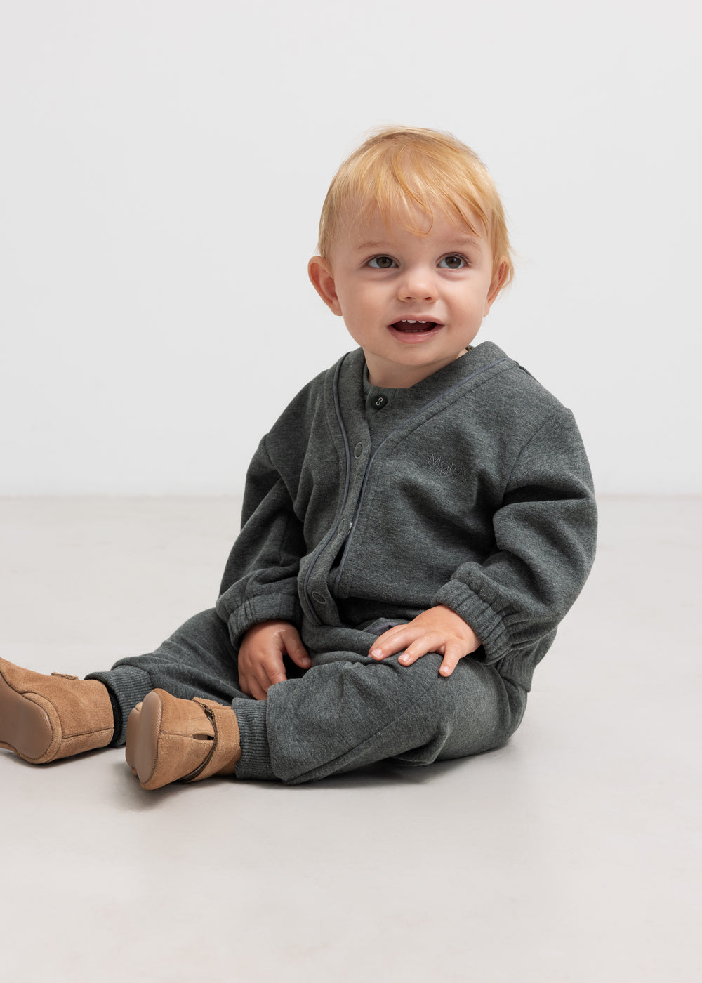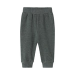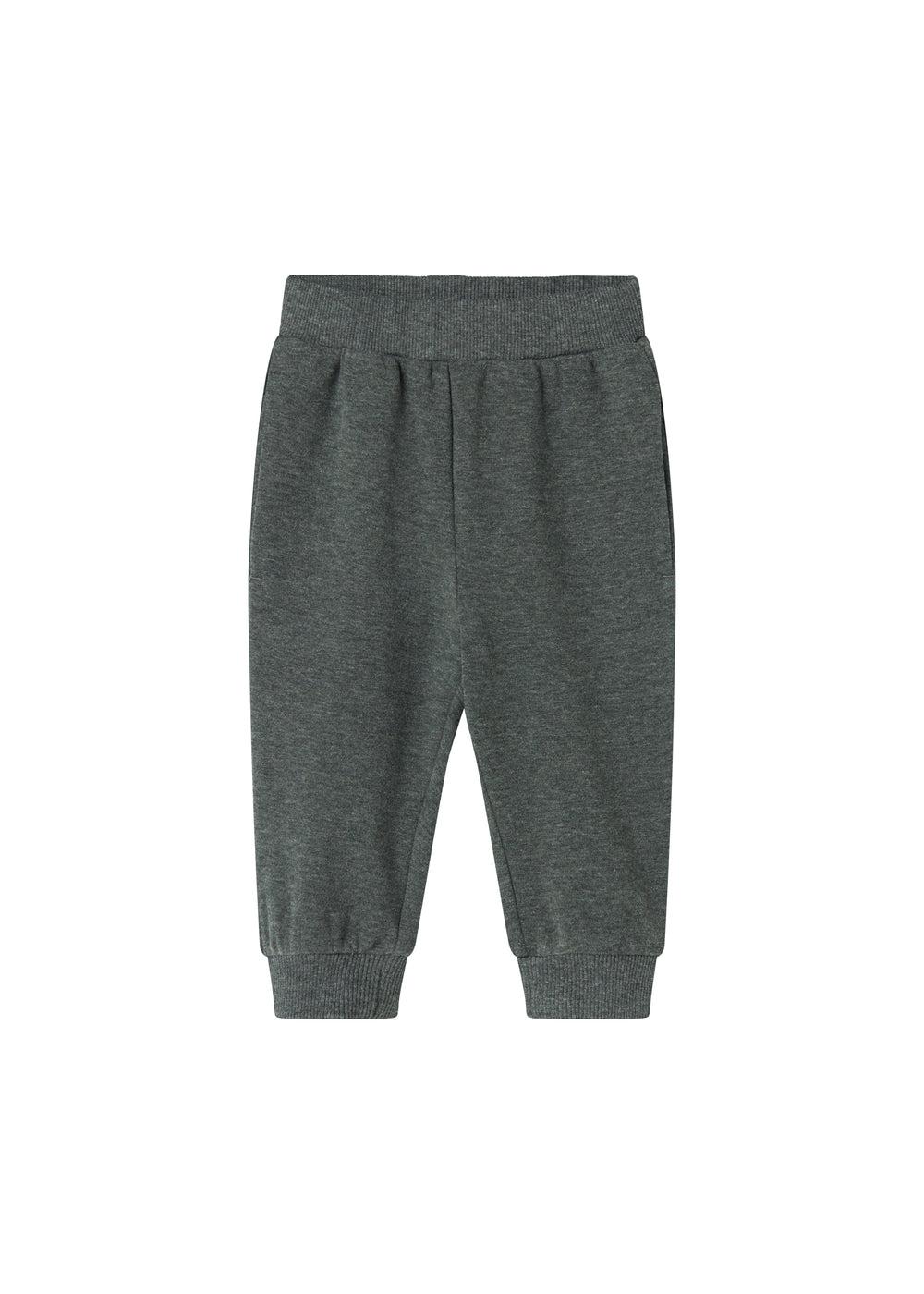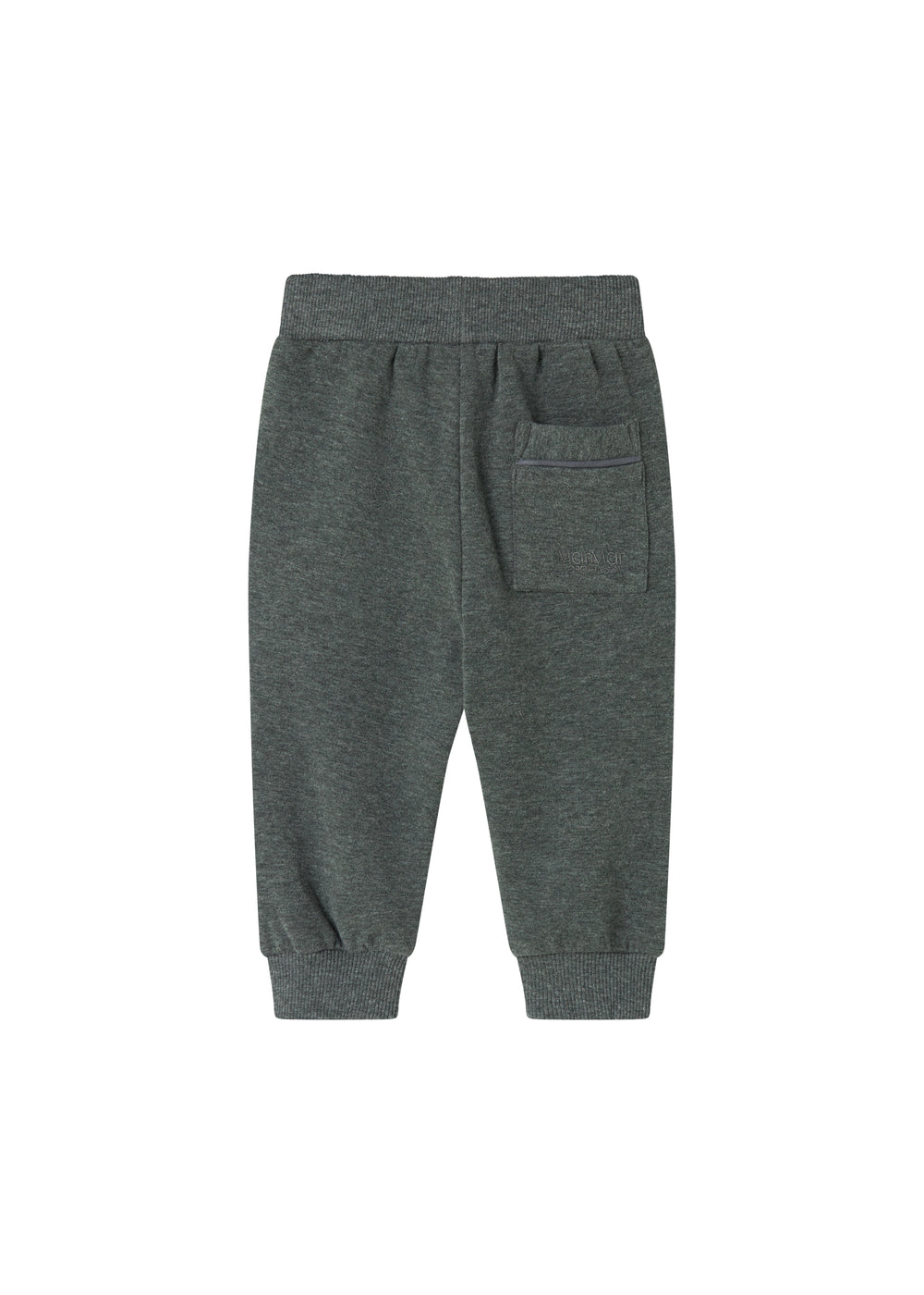 Soft baby sweatpants in a looser fit with elastic at the waist, bottom, two side pockets and a pocket with logo embroidery at the back. The sweatpants are very soft and comfortable to wear.