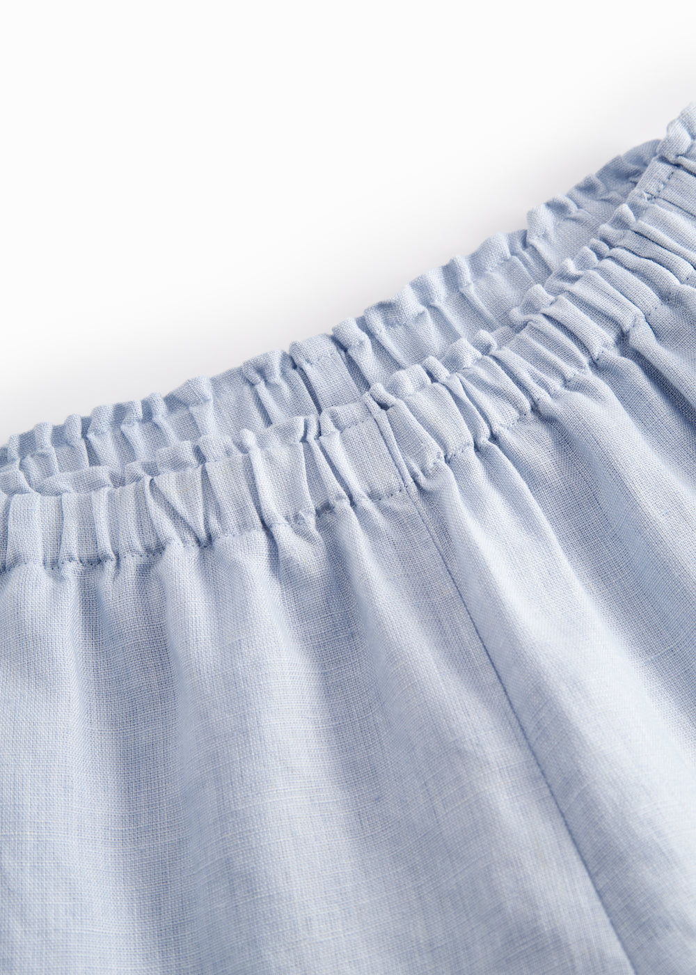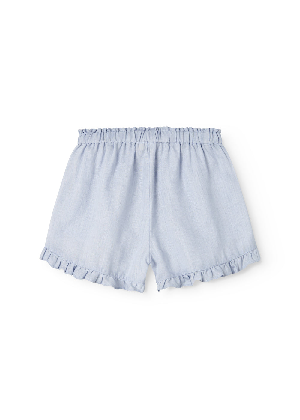 Shorts for children in an airy and comfortable linen quality with ruffle details and side pockets. The shorts have elastic at the waist for a comfortable fit.