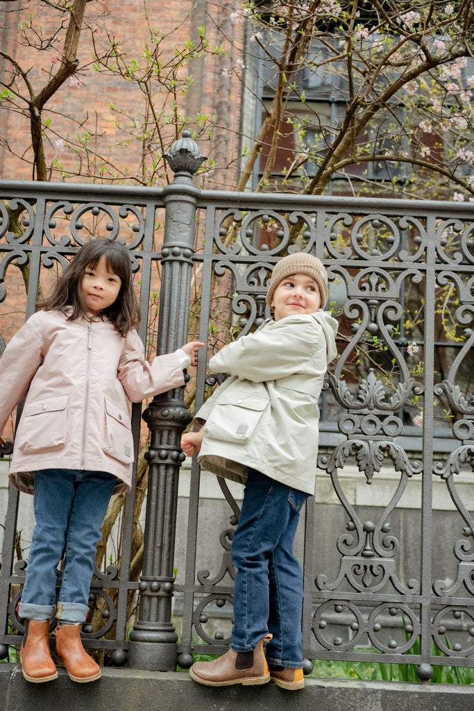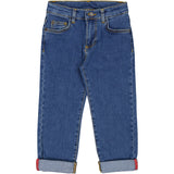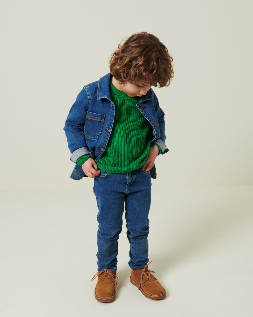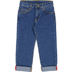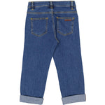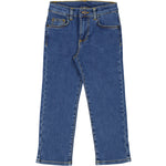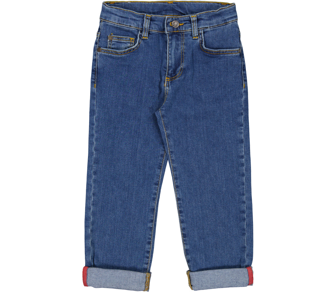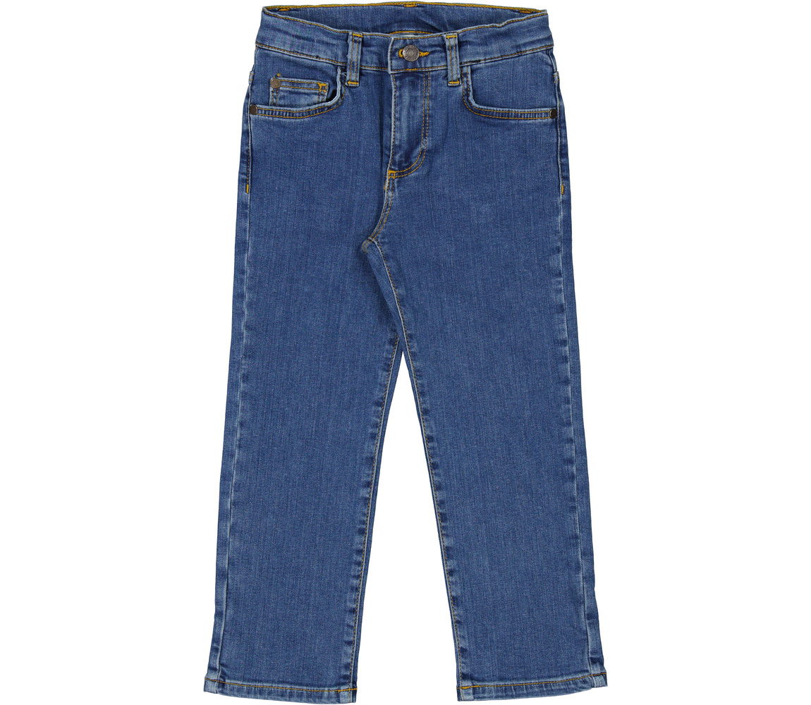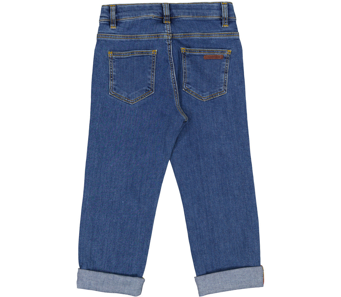 Classic jeans with 5 pockets and a slim fit. The pants have a wide elastic waist that can be adjusted inside. Closes with hook and zipper up to size 9 years / closes with button and zipper from size 10 years
