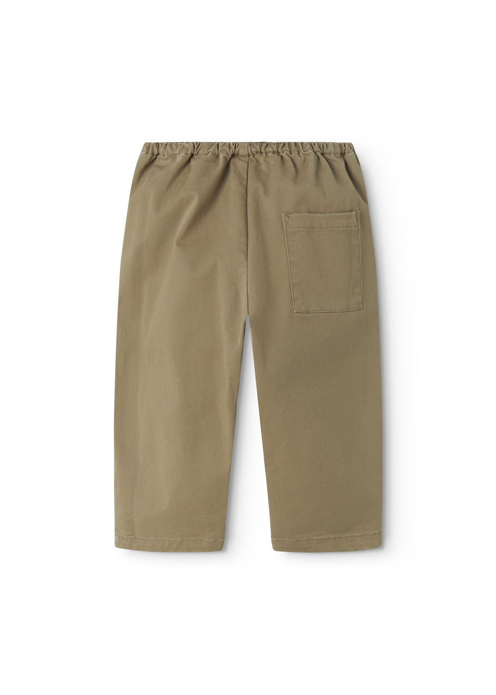 Chino pants for baby with elastic waist and back pocket. The pants have a loose fit and are comfortable to wear.