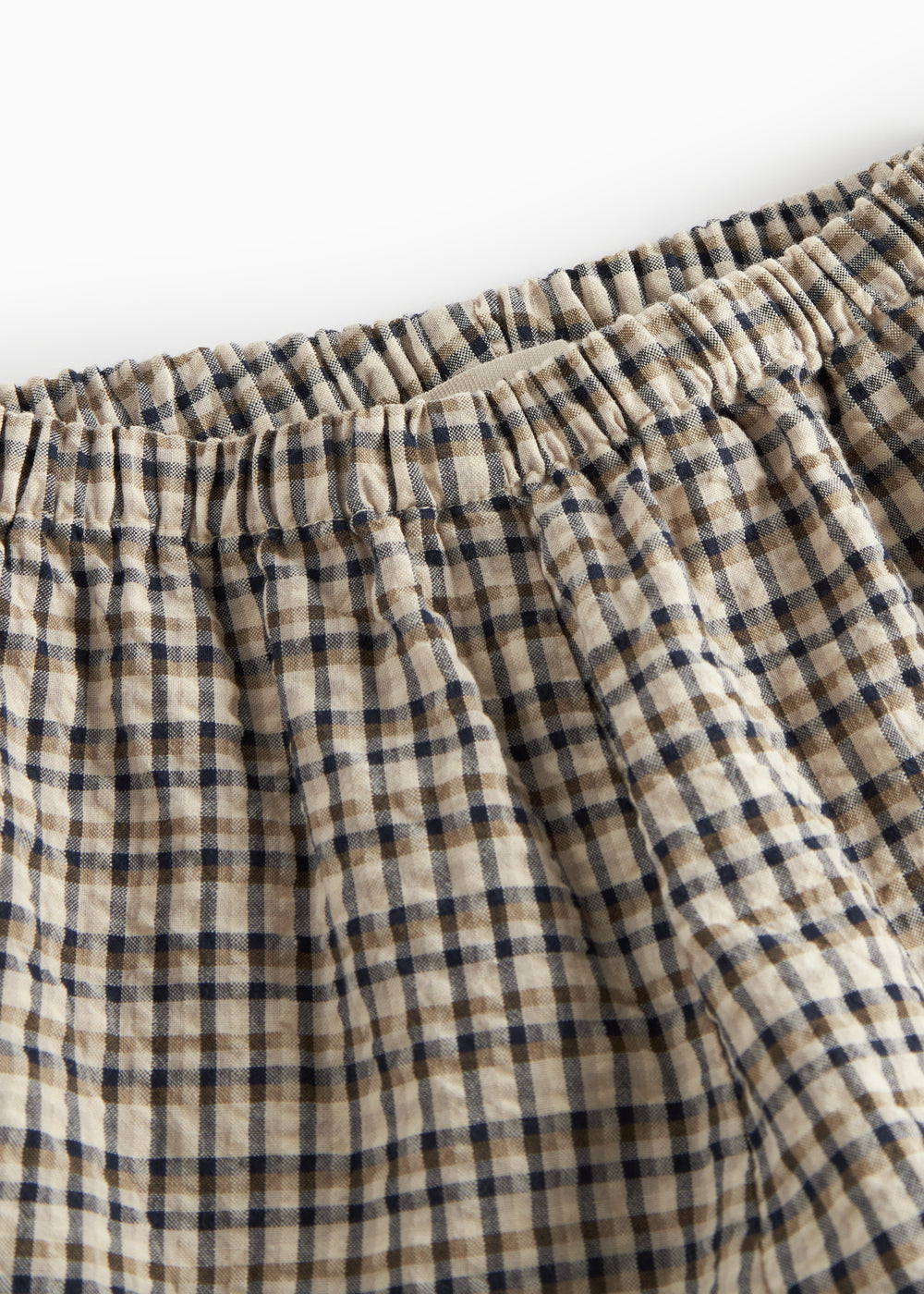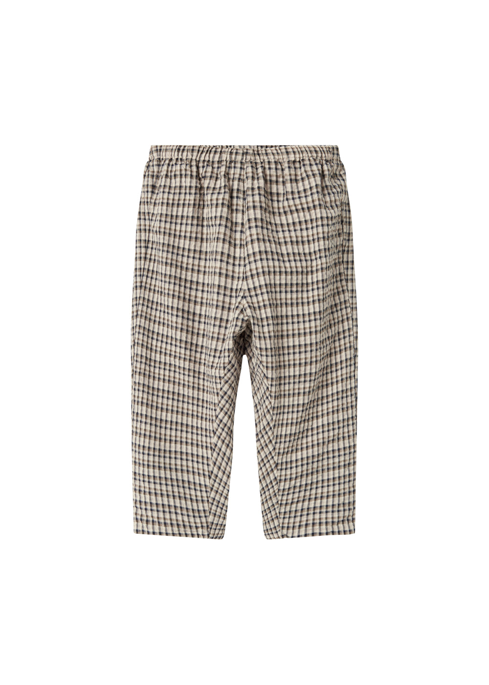 Comfortable baby pants in crepe cotton with a loose fit and elastic at the waist. The pants have a comfortable fit.