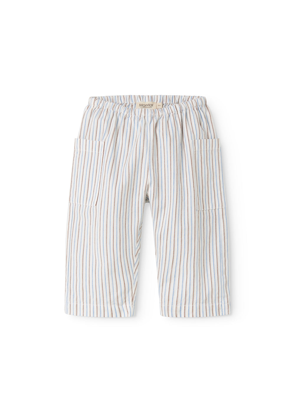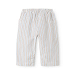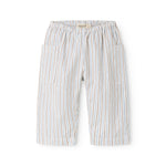 Comfortable striped baby pants, with a loose fit. The pants have two front pockets and elastic at the waist. The pants have a comfortable fit and are soft to wear.