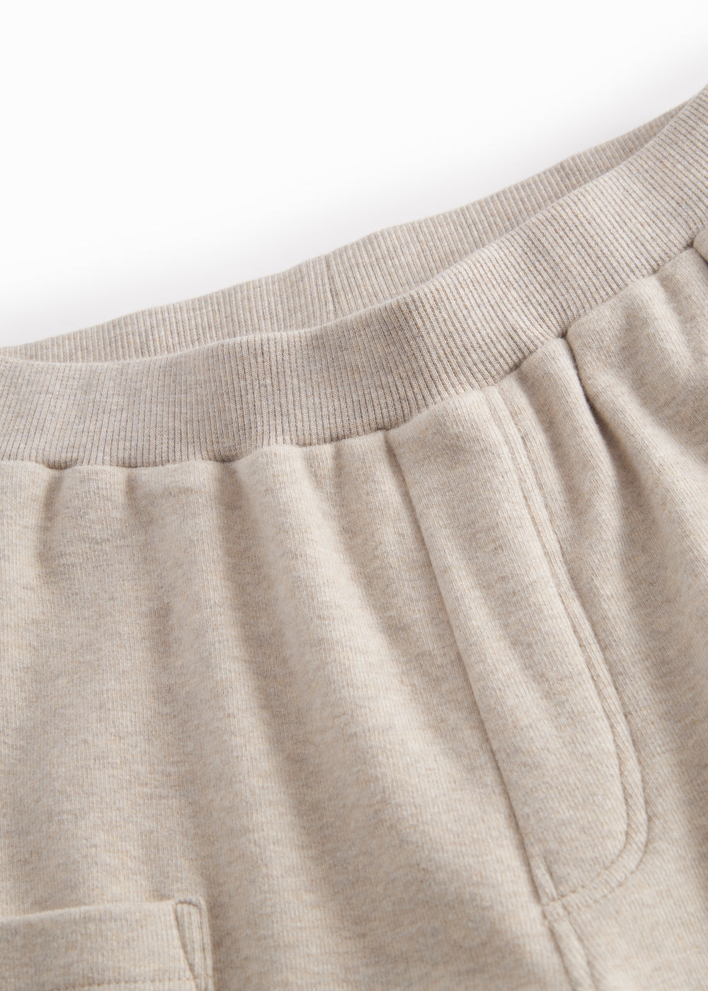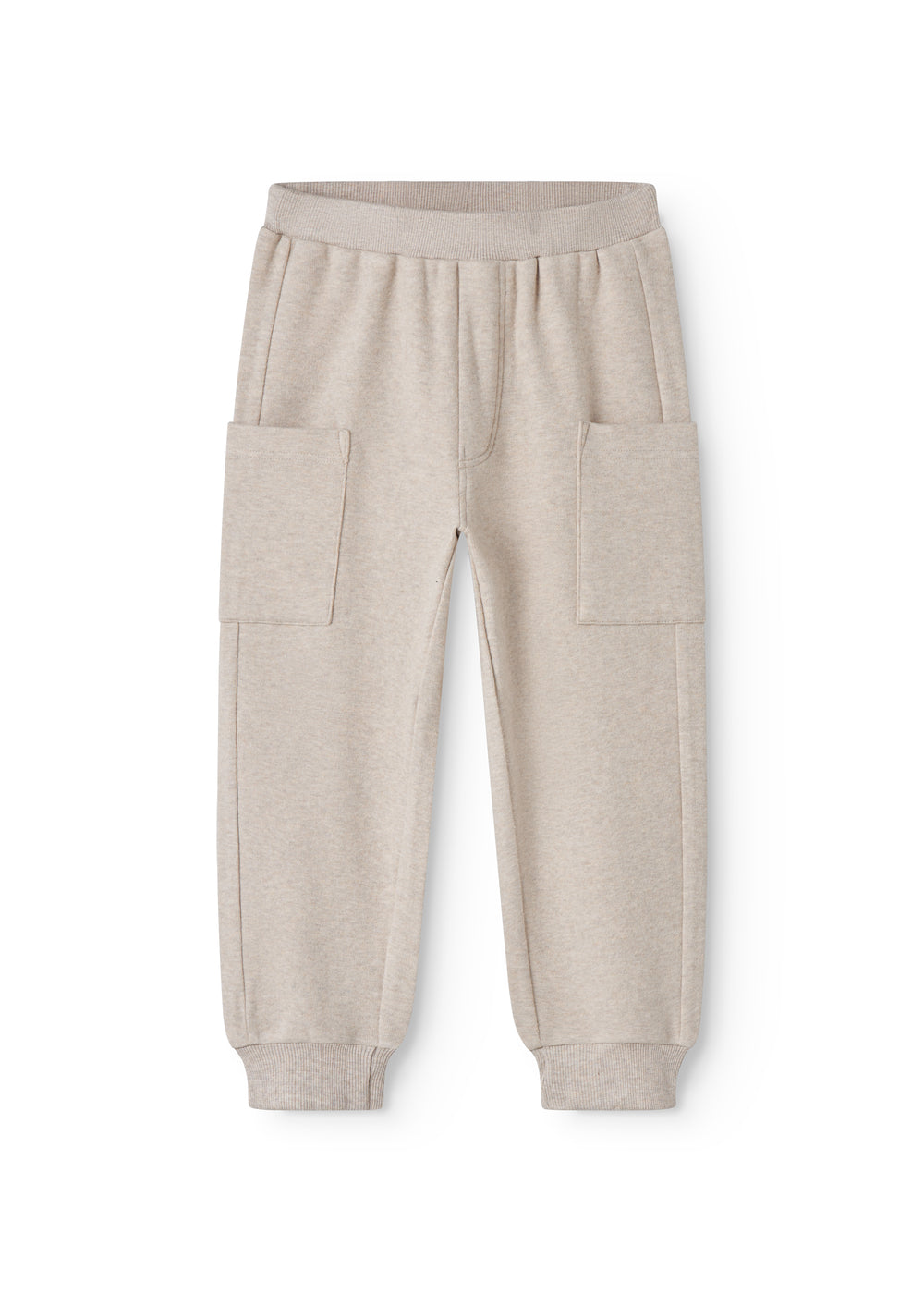 Soft sweatpants in a looser fit with ribbed waistband and hem. The sweatpants have two large pockets on the side. The sweatpants are very soft and comfortable to wear.