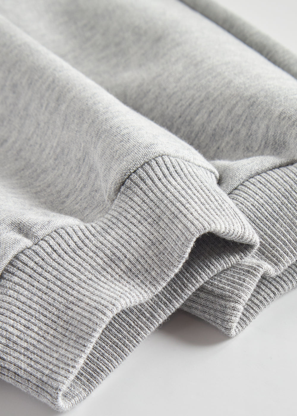 Sweatpants for children in a looser fit with elastic and drawstring, two side pockets and one back pocket. The sweatpants have a soft brushed inside, are stretchy and comfortable to wear.