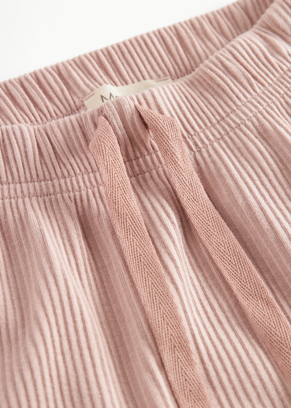 Lyserøde ribstrikkede babybukser med elastisk talje og snor