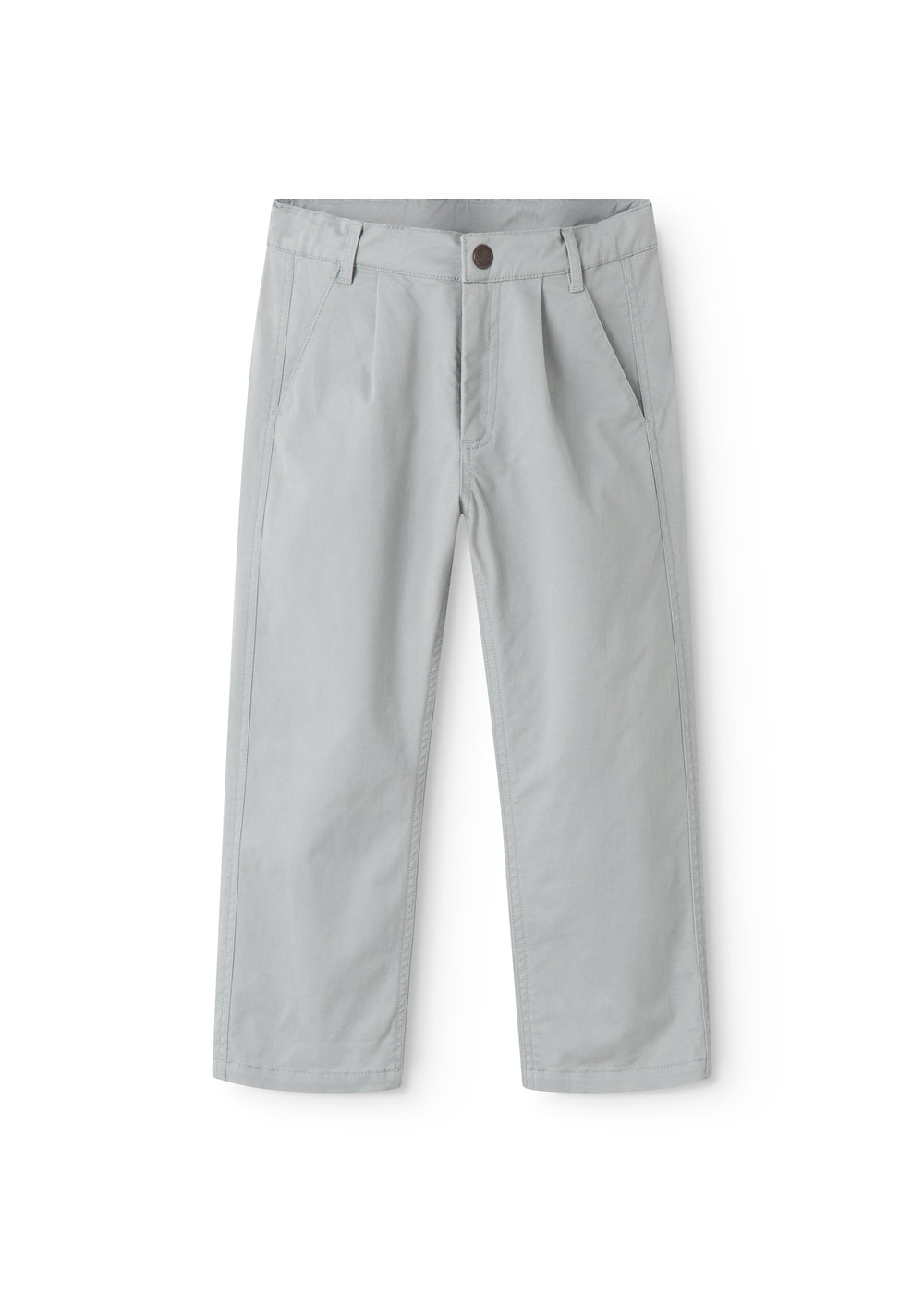 Chino trousers for children with three pockets and a wide elastic waistband that can be adjusted inside. Fastened with a press stud and zipper up to size 9 years/fastened with a hook and zipper from size 10 years.