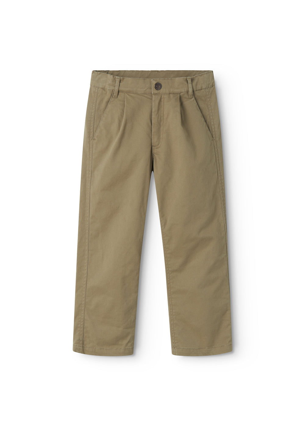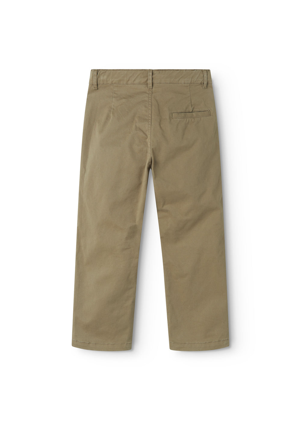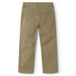 Chino trousers for children with three pockets and a wide elastic waistband that can be adjusted inside. Fastened with a press stud and zipper up to size 9 years/fastened with a hook and zipper from size 10 years.