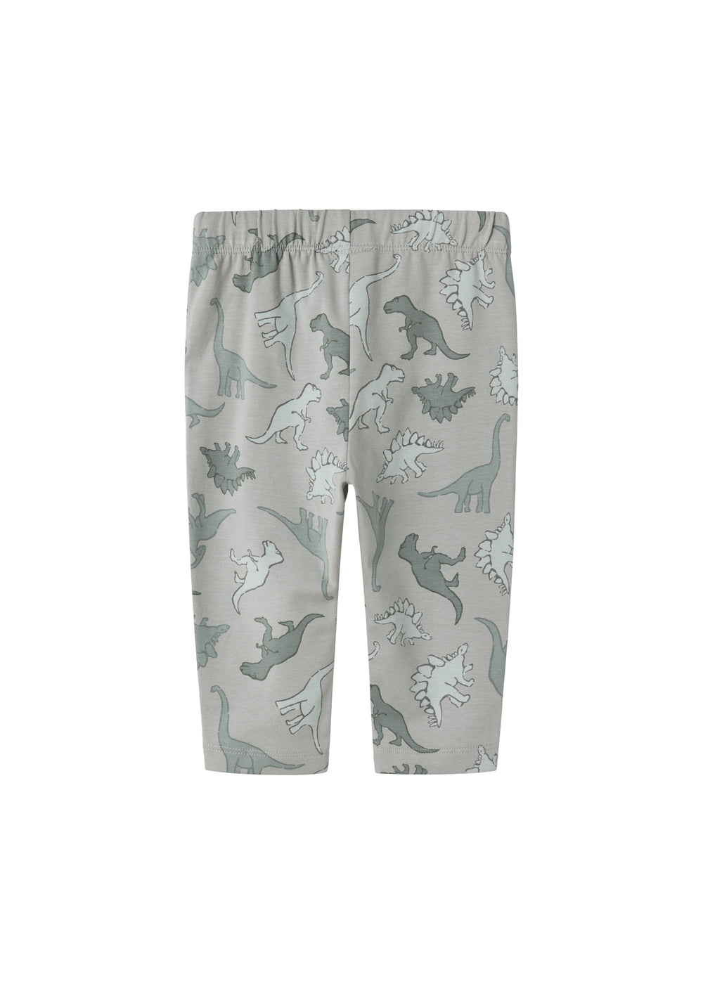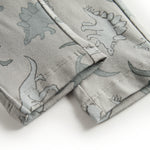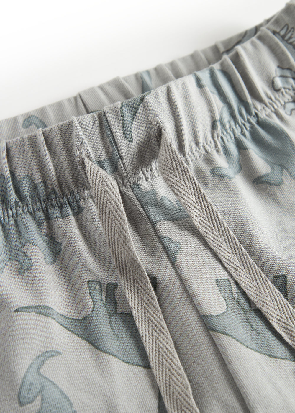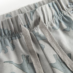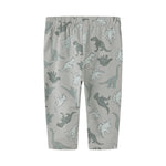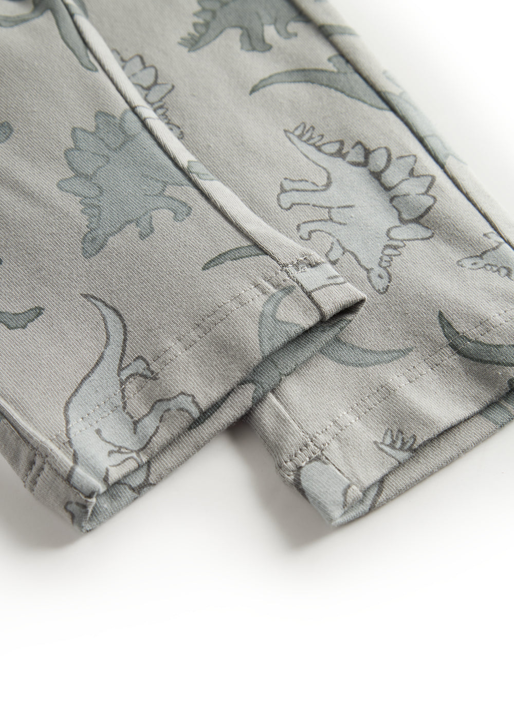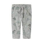 Comfortable pants with a dinosaur print, elastic and decorative ribbon at the waist. The pants are soft, stretchy and comfortable to wear.