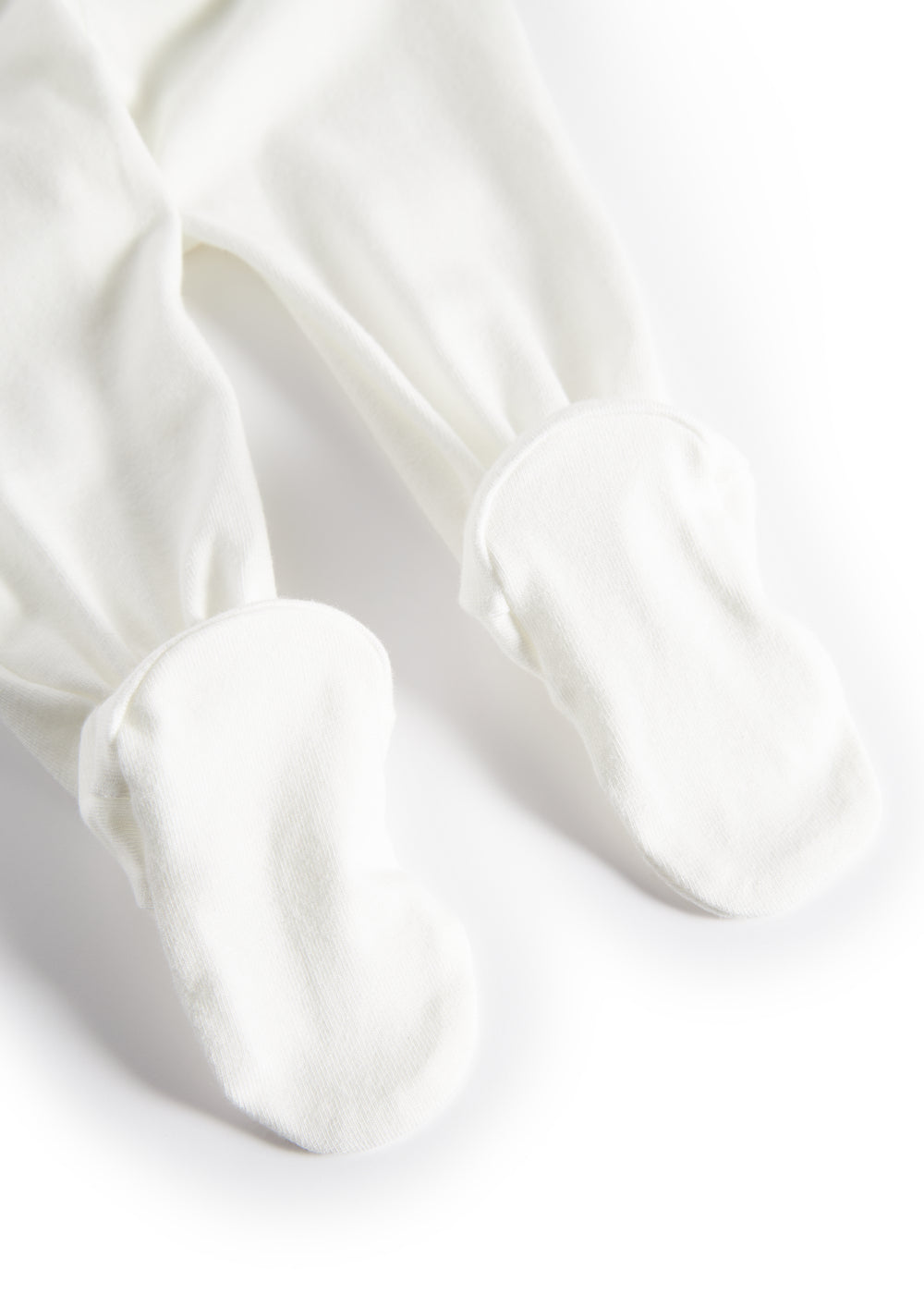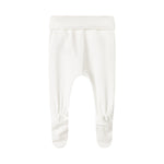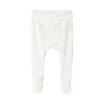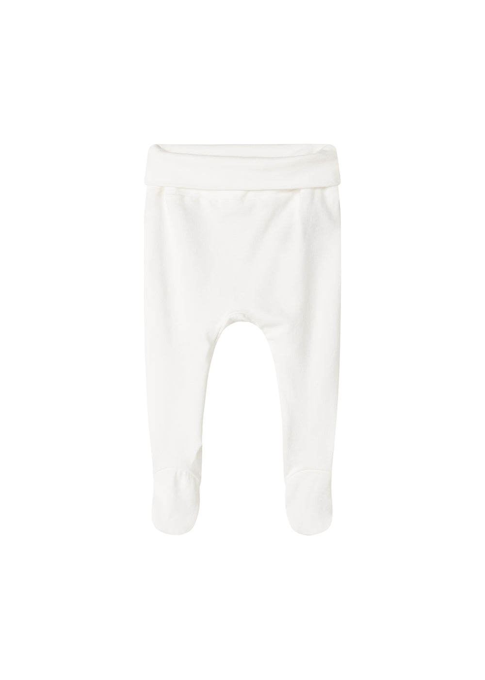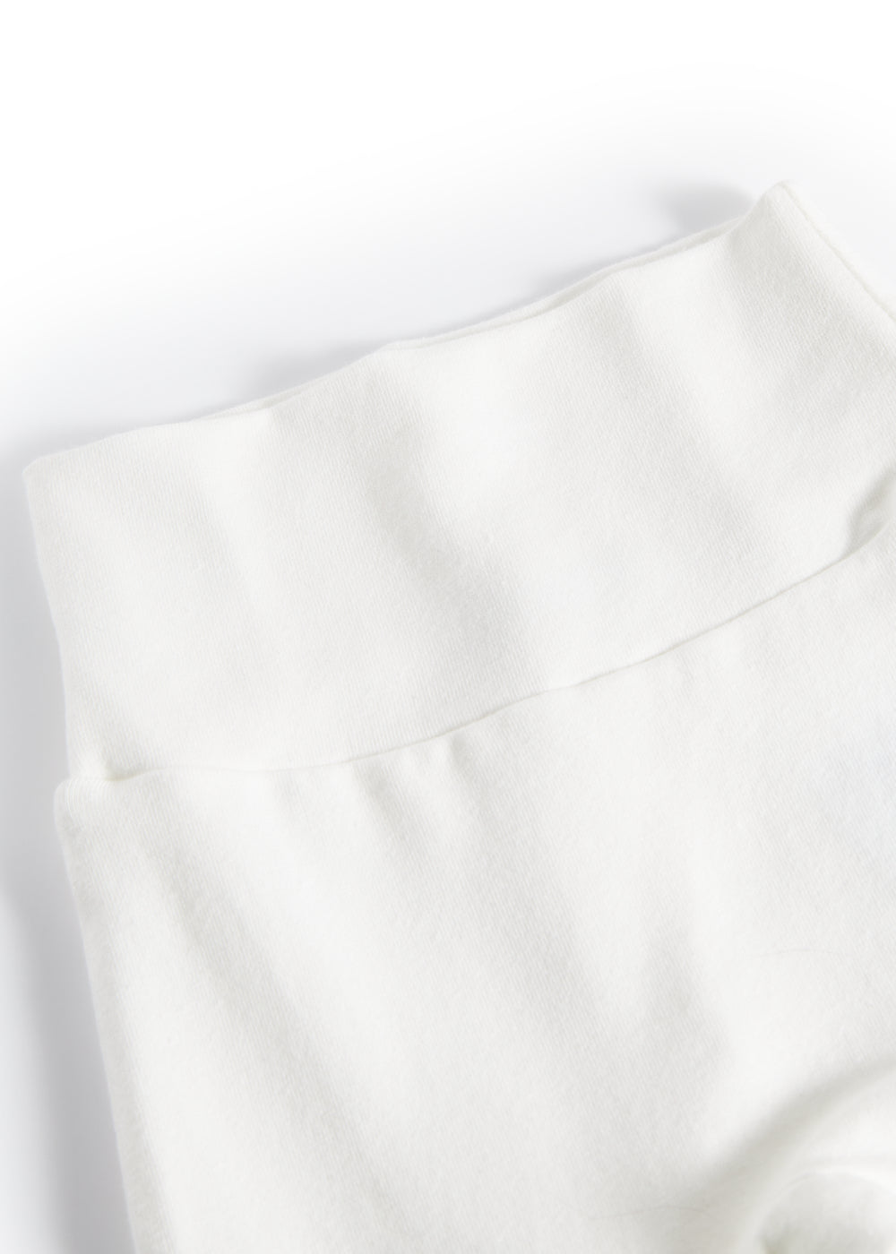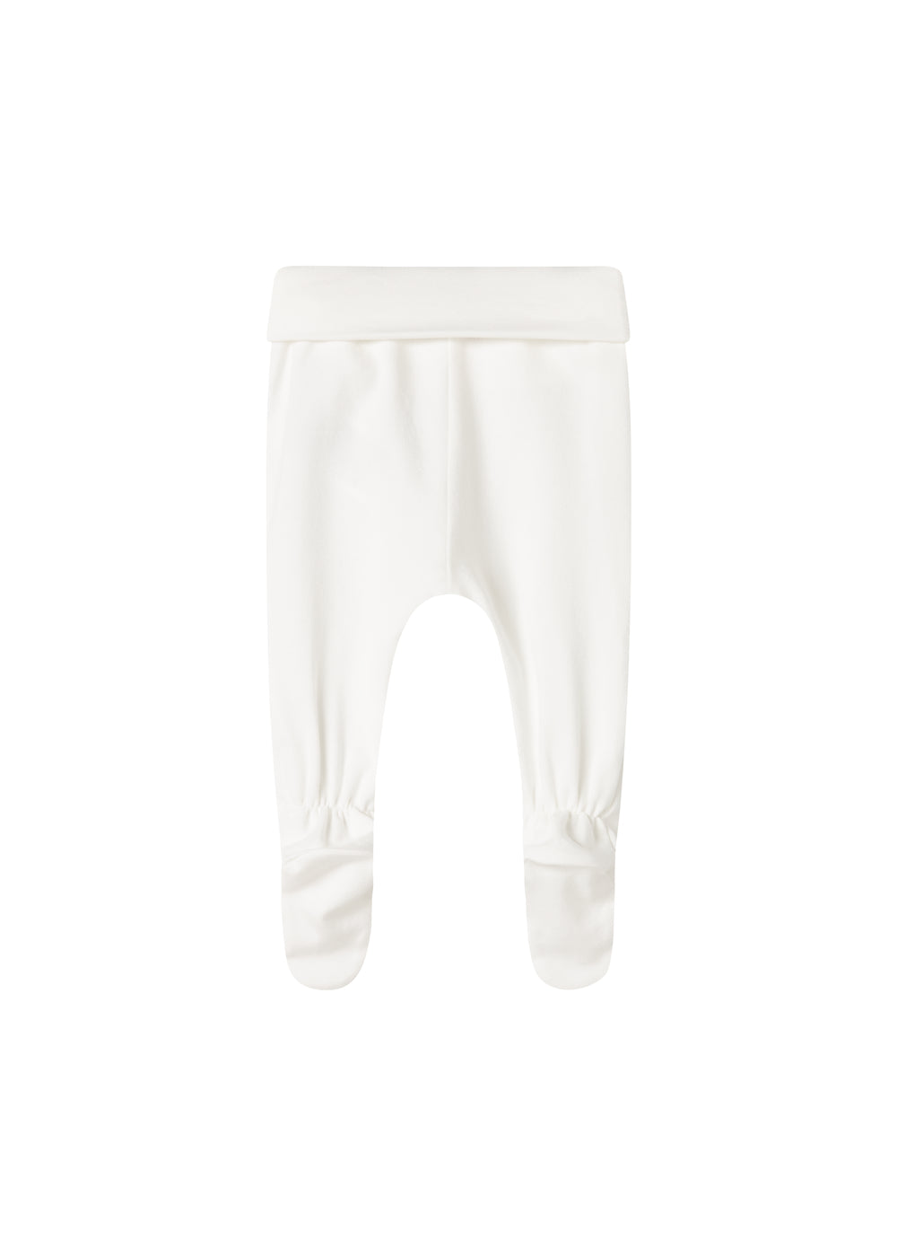 Comfortable pants with feet for newborns. The pants are soft, hold their shape and color, and have elastane in them, which makes them stretchy and comfortable to wear.