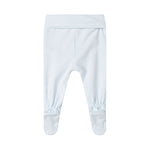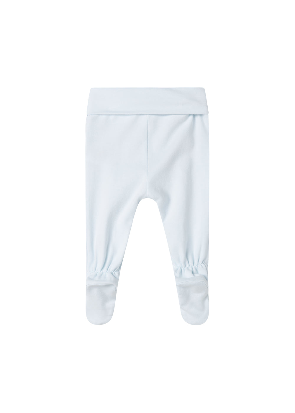 Comfortable pants with feet for newborns. The pants are soft, hold their shape and color, and have elastane in them, which makes them stretchy and comfortable to wear.