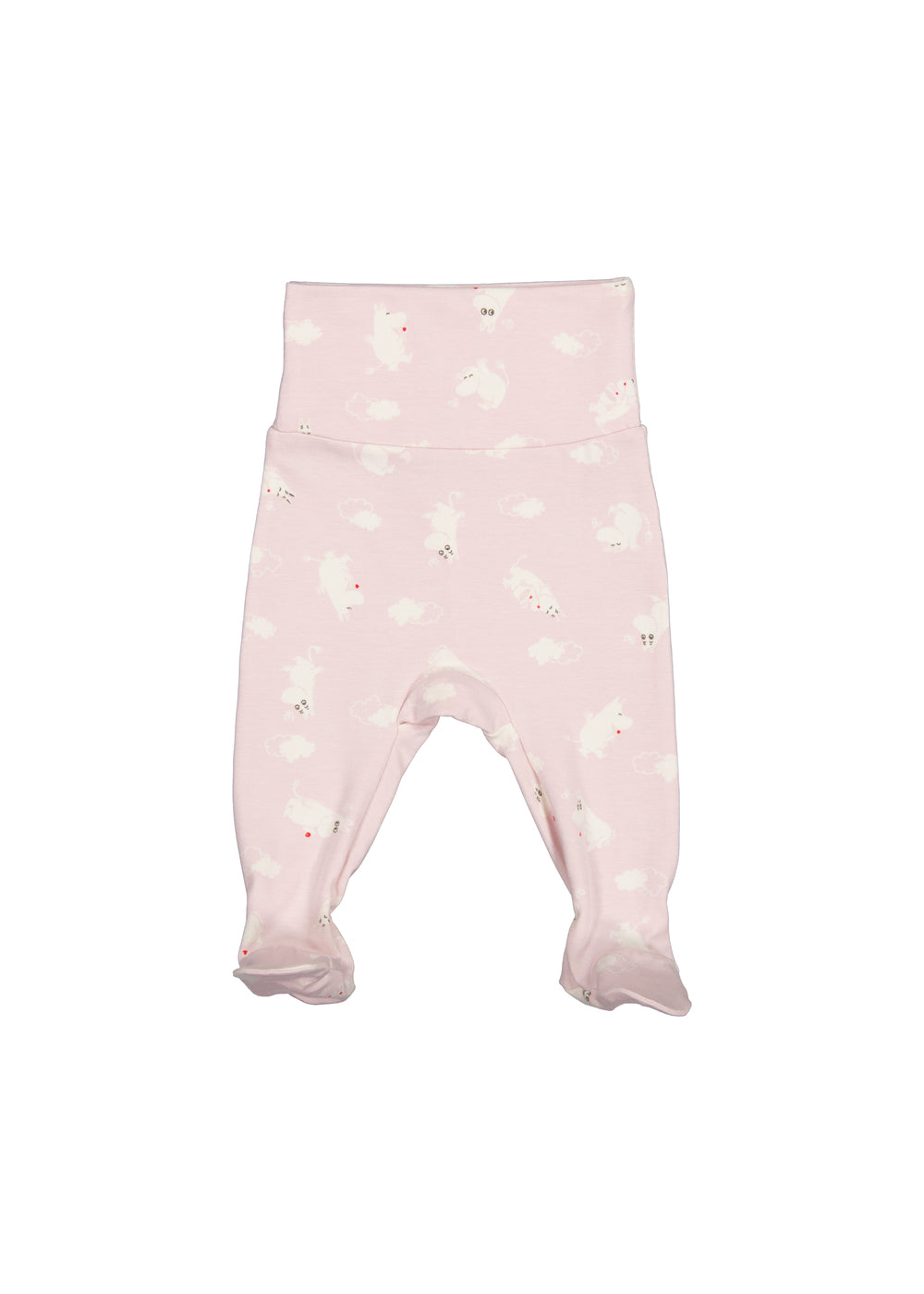 Comfortable pants with feet for newborns with a cute Moomin print. The pants are soft, stretchy and comfortable to wear.