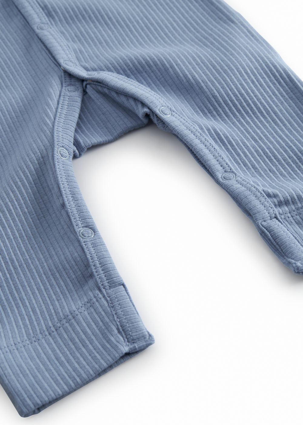 Simple long-sleeved jumpsuit that can be buttoned all the way from the neck down both legs with snaps for easy diaper changes. The jumpsuit is soft, holds its shape and color and has elastane in it, which makes it stretchy and comfortable to wear.
