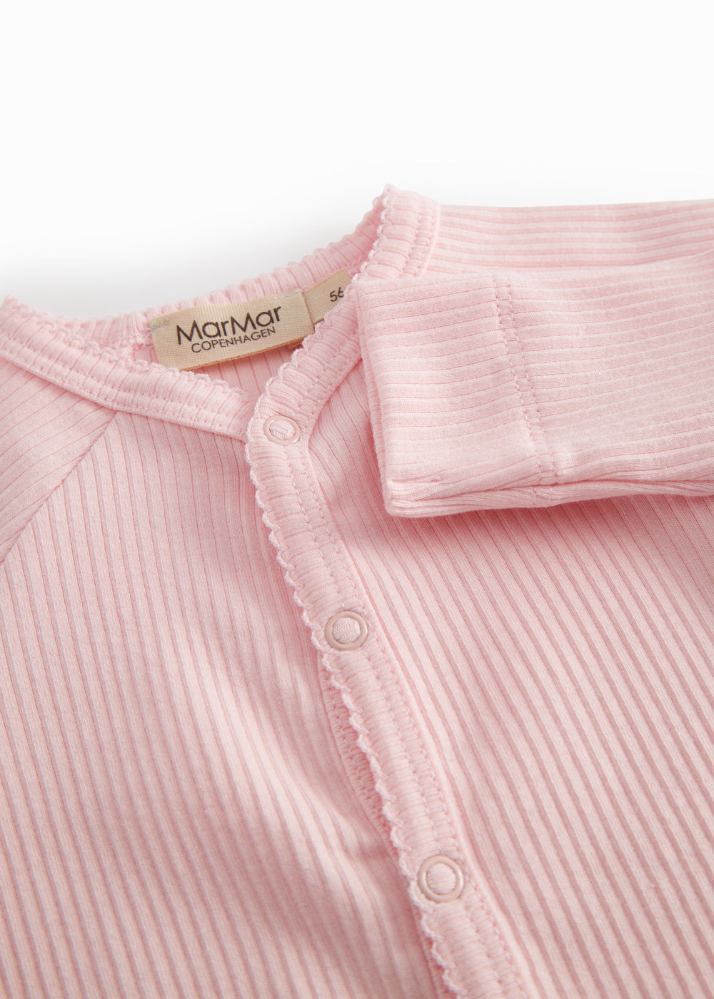 Simple long-sleeved jumpsuit with feet that can be buttoned all the way from the neck down both legs with snaps for easy diaper changes. The jumpsuit is soft, holds its shape and color and has elastane in it which makes it stretchy and comfortable to wear.
