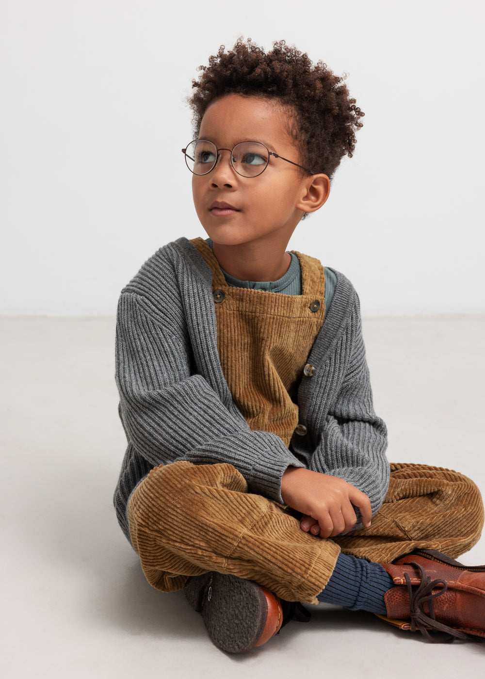 Children's suspenders in soft velvet with suspenders that can be closed in two lengths with button closure. The suspenders have a small pocket at the back.