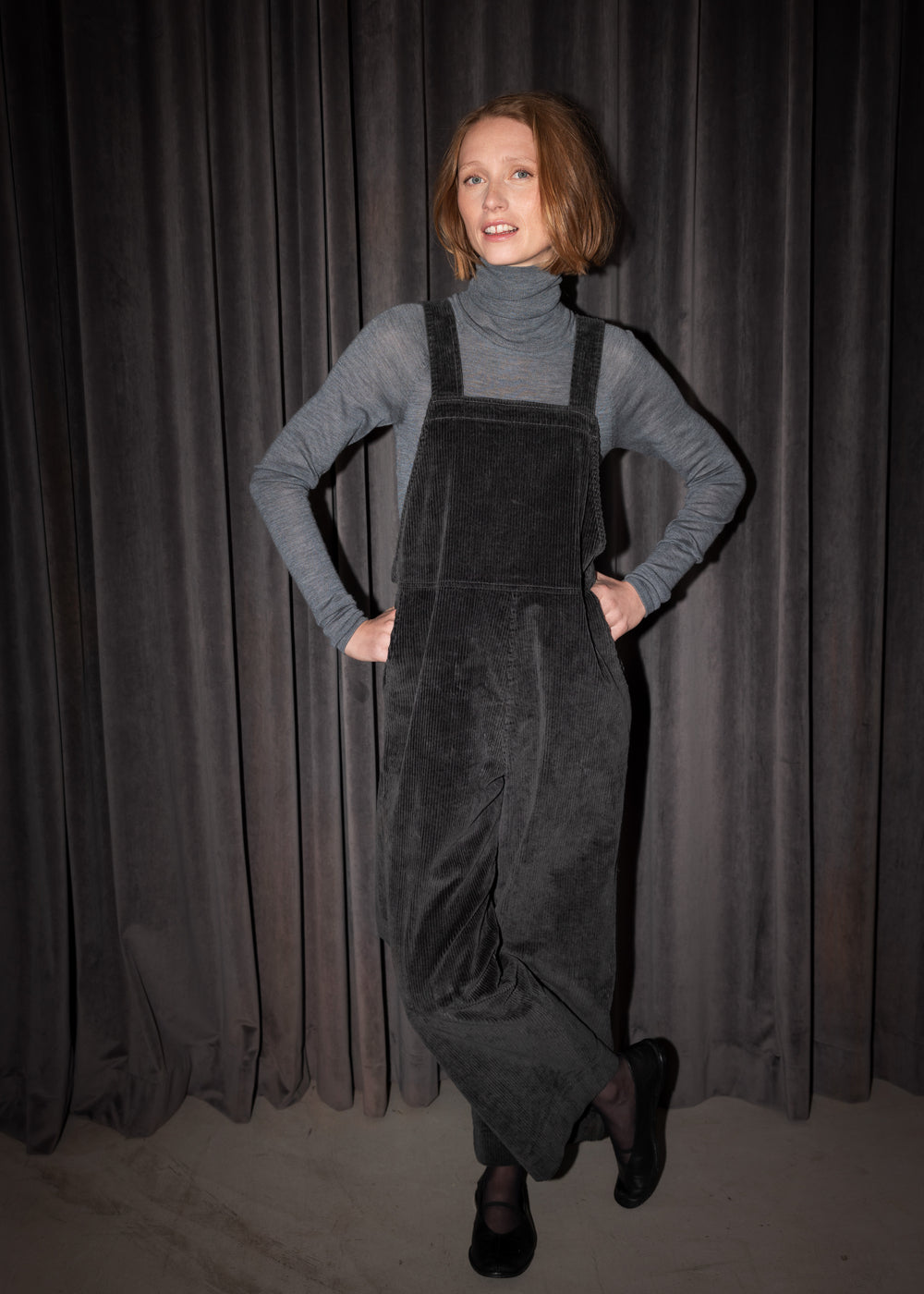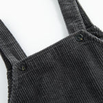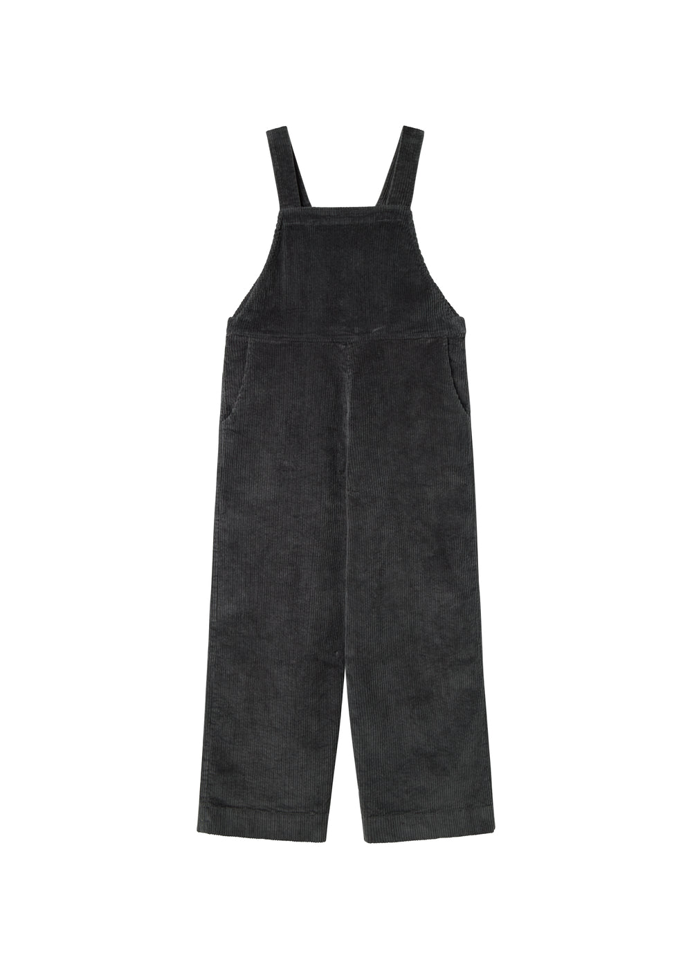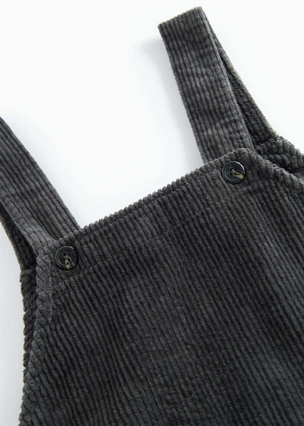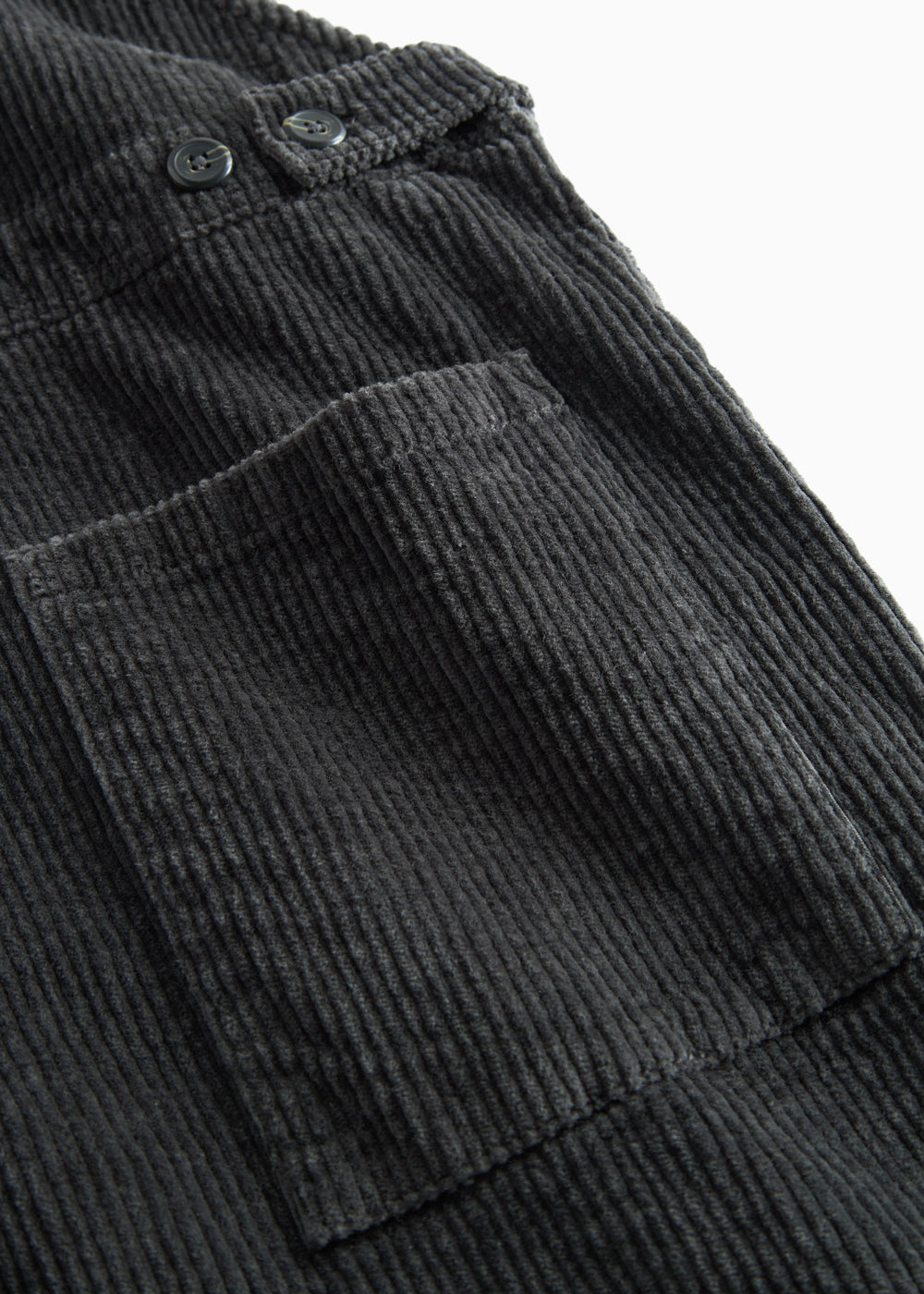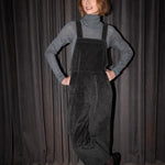 Women's suspenders in soft velvet with suspenders that can be closed in two lengths with button closure. The suspenders can be adjusted at the waist with button closure and have two pockets in the front and two pockets in the back.