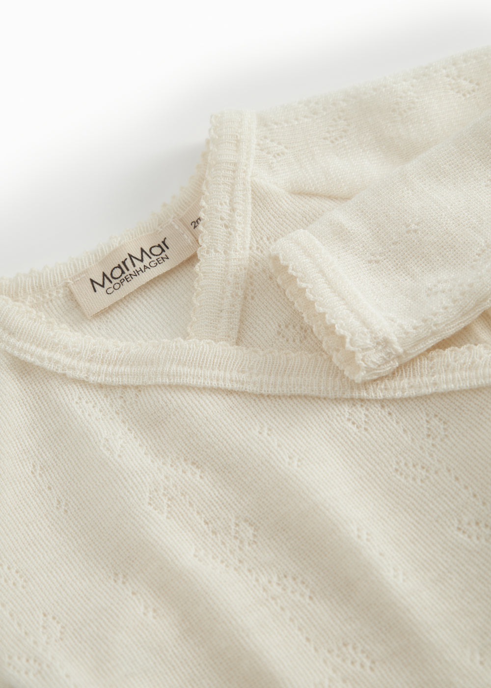 Turtleneck, Wool Pointelle Jumpsuit - Natural