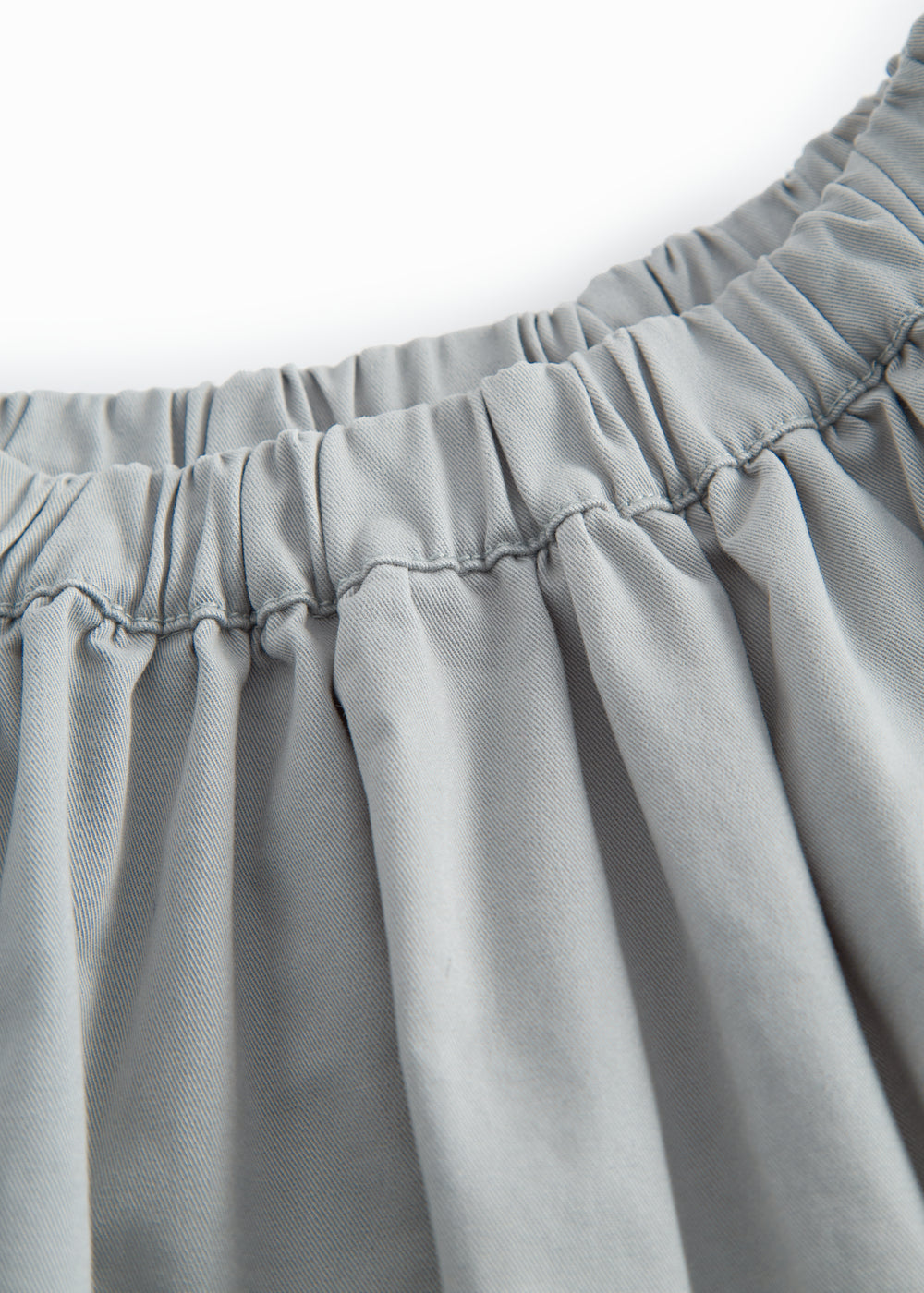 Chino skirt for children with a wide fit and two spacious side pockets. The skirt has an elastic waist and the length is just above the knee.