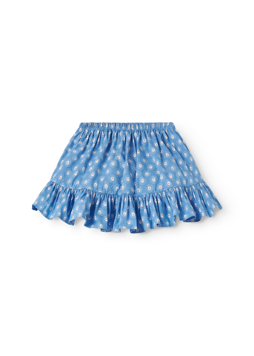 Skirt in a fine hand-drawn print, with a wide ruffled hem and elastic at the waist, ensuring a comfortable fit. The length of the skirt goes above the knee. The skirt is in a light and crispy cotton quality and is both comfortable, light and airy to wear.