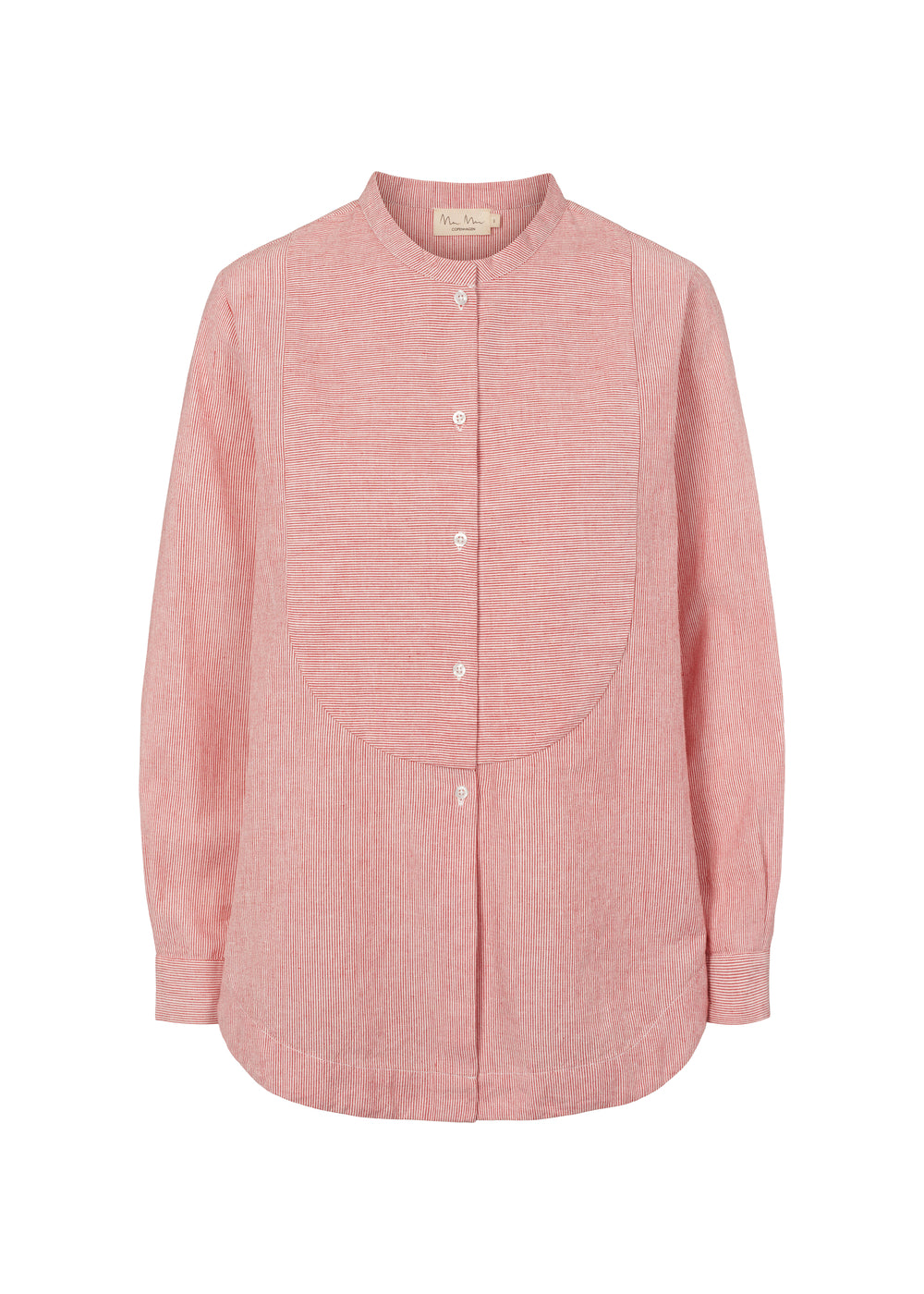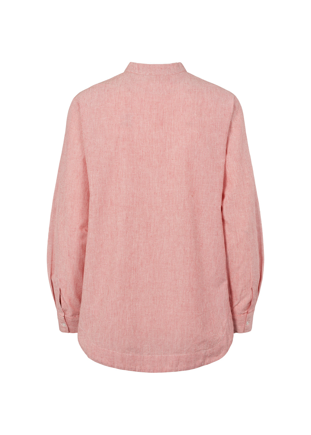 Long-sleeved striped shirt with mandarin collar and button closure