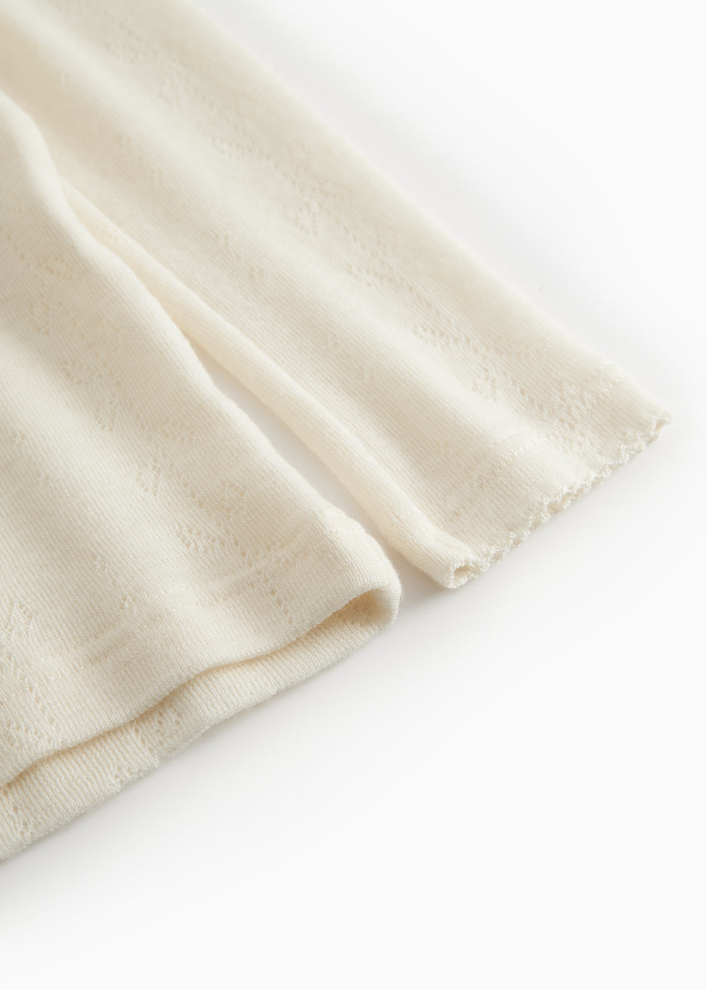 Soft wool quality - Lace pattern knit - Picot edges - Delicate, light and airy design - "Super wash wool" quality - 100% Natural material and breathable quality - Supports the body's natural temperature regulation - Does not tolerate too much mechanical washing - Must be washed correctly according to instructions - Color: Black - Style No.: 101-661-06