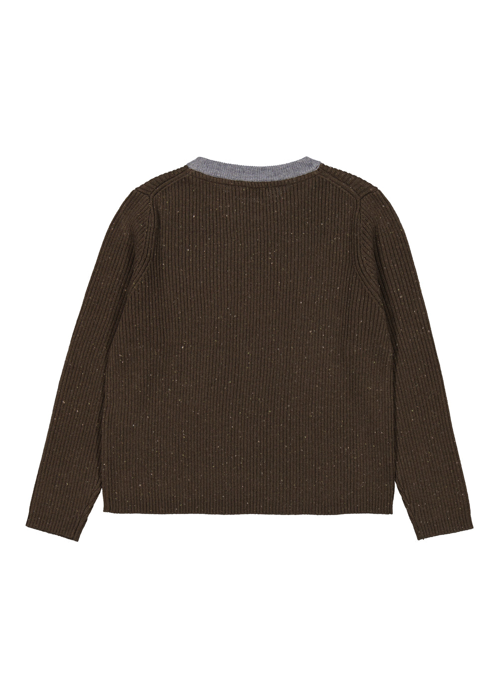 Simple and warm wool knit sweater. The sweater closes with a button closure at the back and has beautiful beaded details.