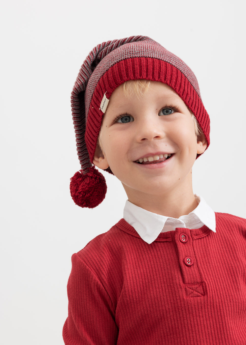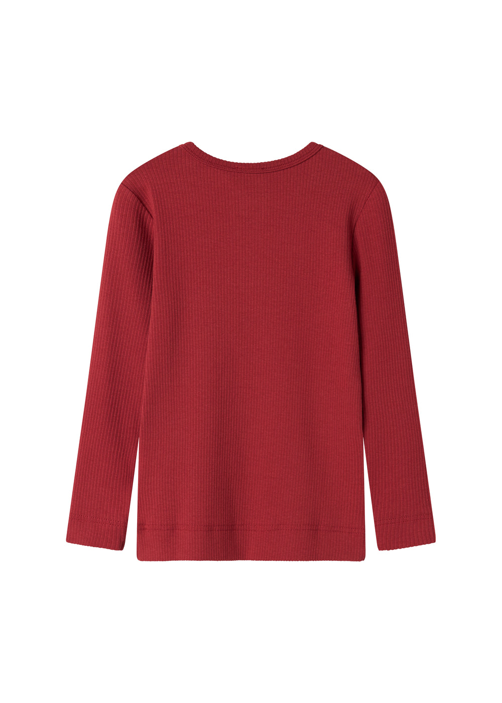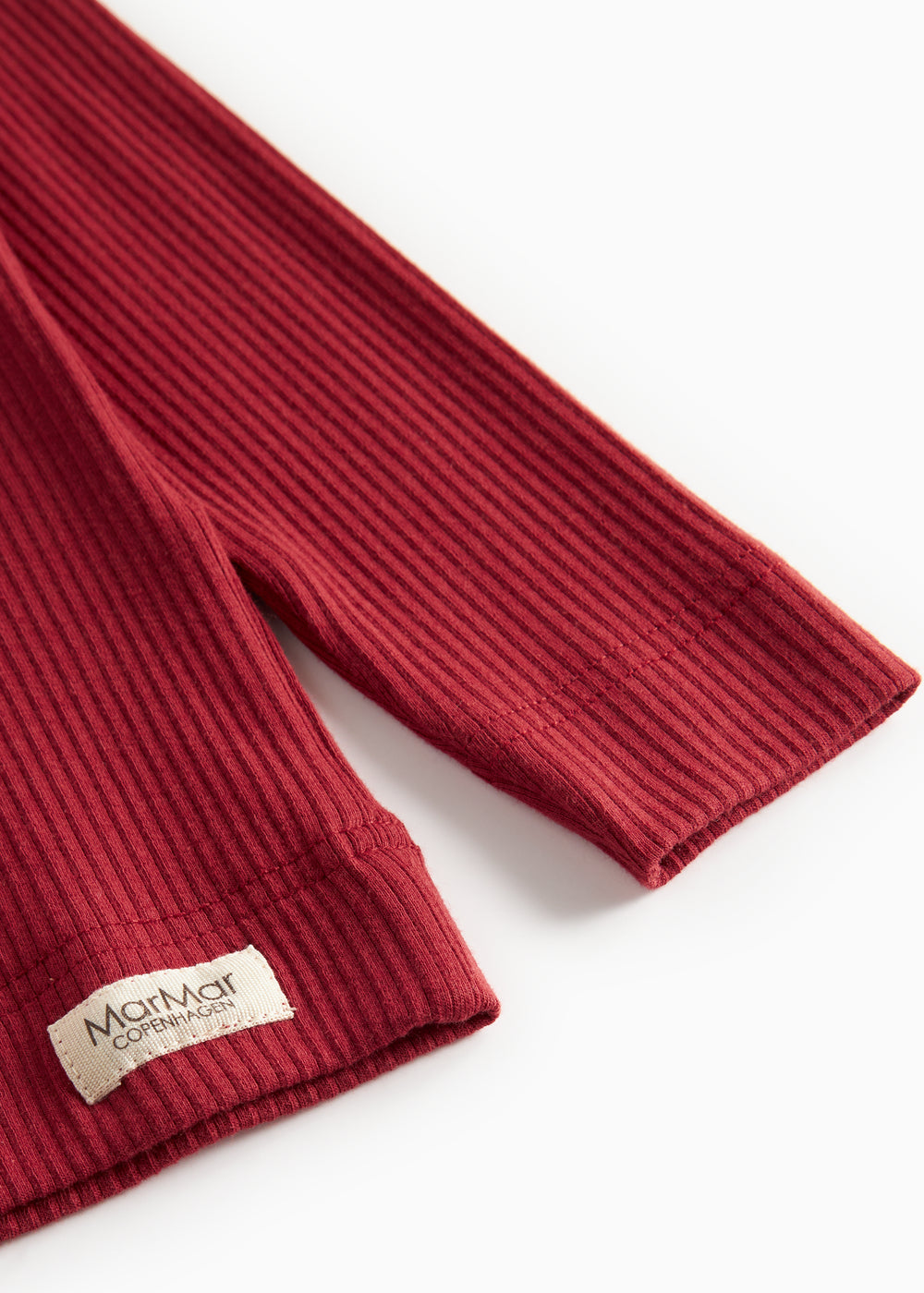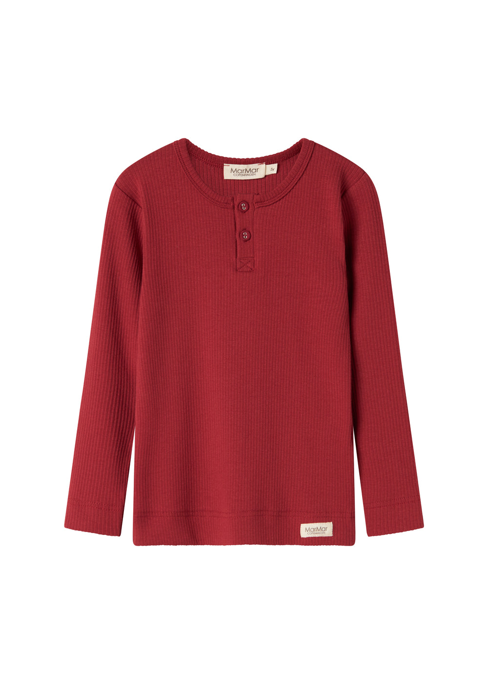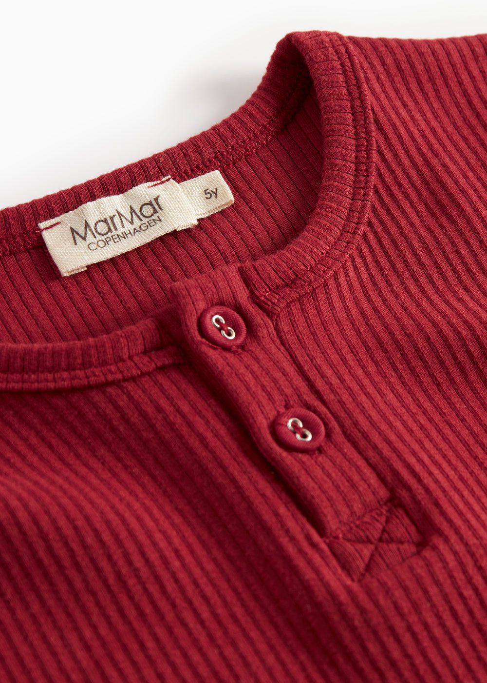 Long-sleeved t-shirt for children with placket button closure. The t-shirt is ribbed, soft, stretchy and comfortable to wear.