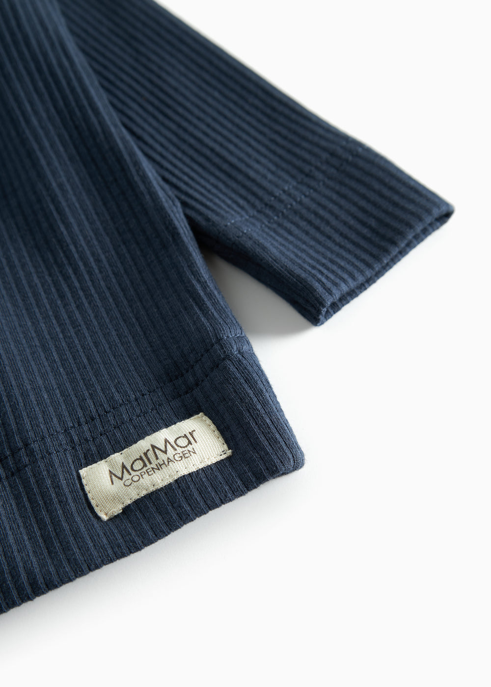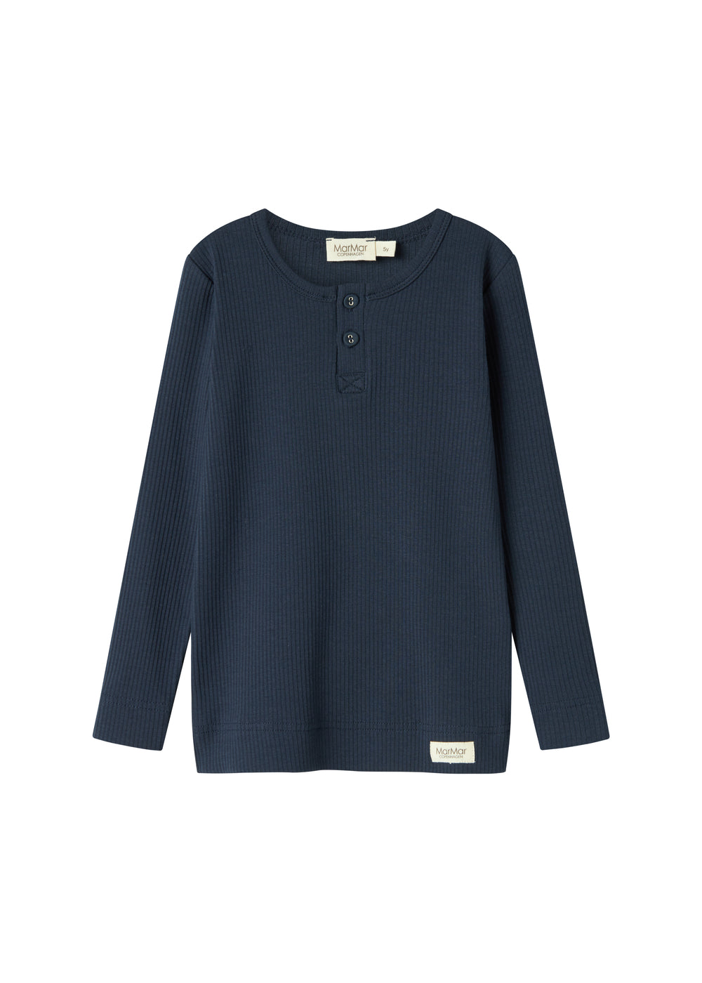 Long-sleeved t-shirt for children with placket button closure. The t-shirt is ribbed, soft, stretchy and comfortable to wear.