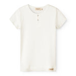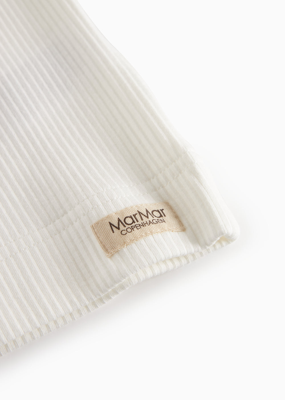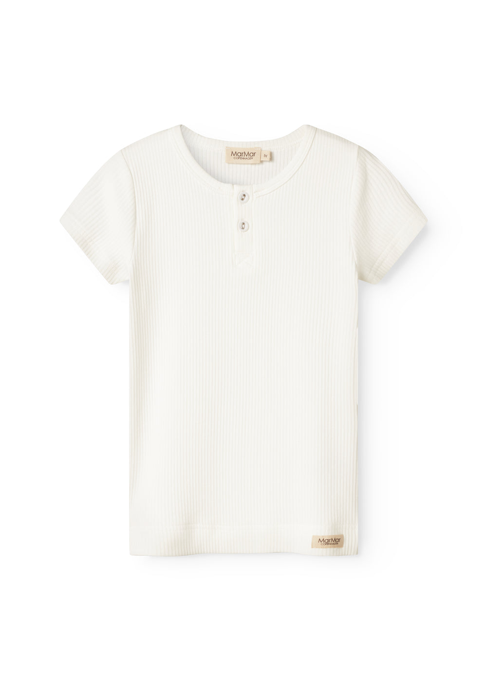 The T-shirt is ribbed, soft, holds its shape and color and has elastane in it, which makes it stretchy and comfortable to wear.