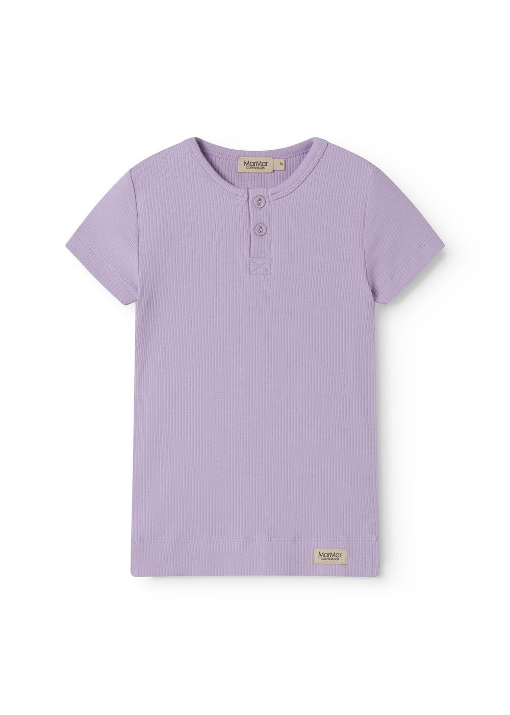 Kortærmet modal ribstrikket t-shirt til børn i lila nuance med stolpe knaplukning