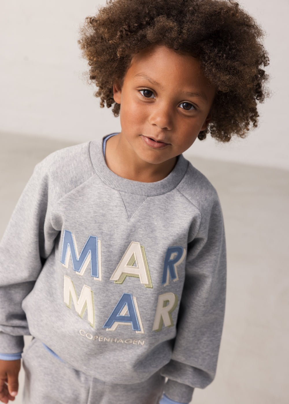 Sweatshirt for children with raglan sleeves and soft rib at the neck, sleeves and around the waist. The sweatshirt has a nice logo print, a soft brushed inside, is stretchy and comfortable to wear.