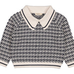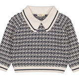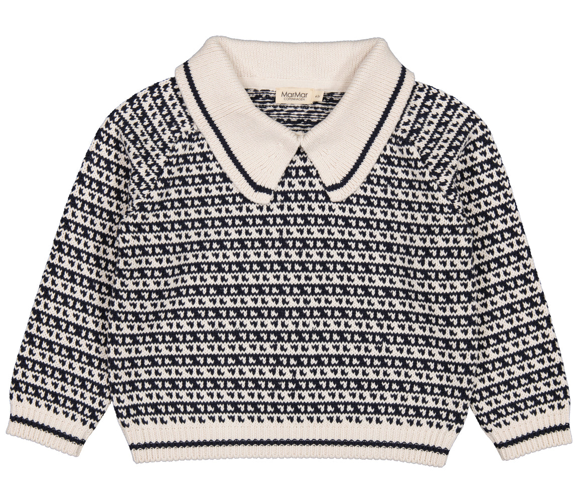 Knitted blouse with raglan sleeves and collar. The knitted blouse has nice graphic knit pattern details.