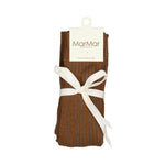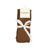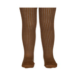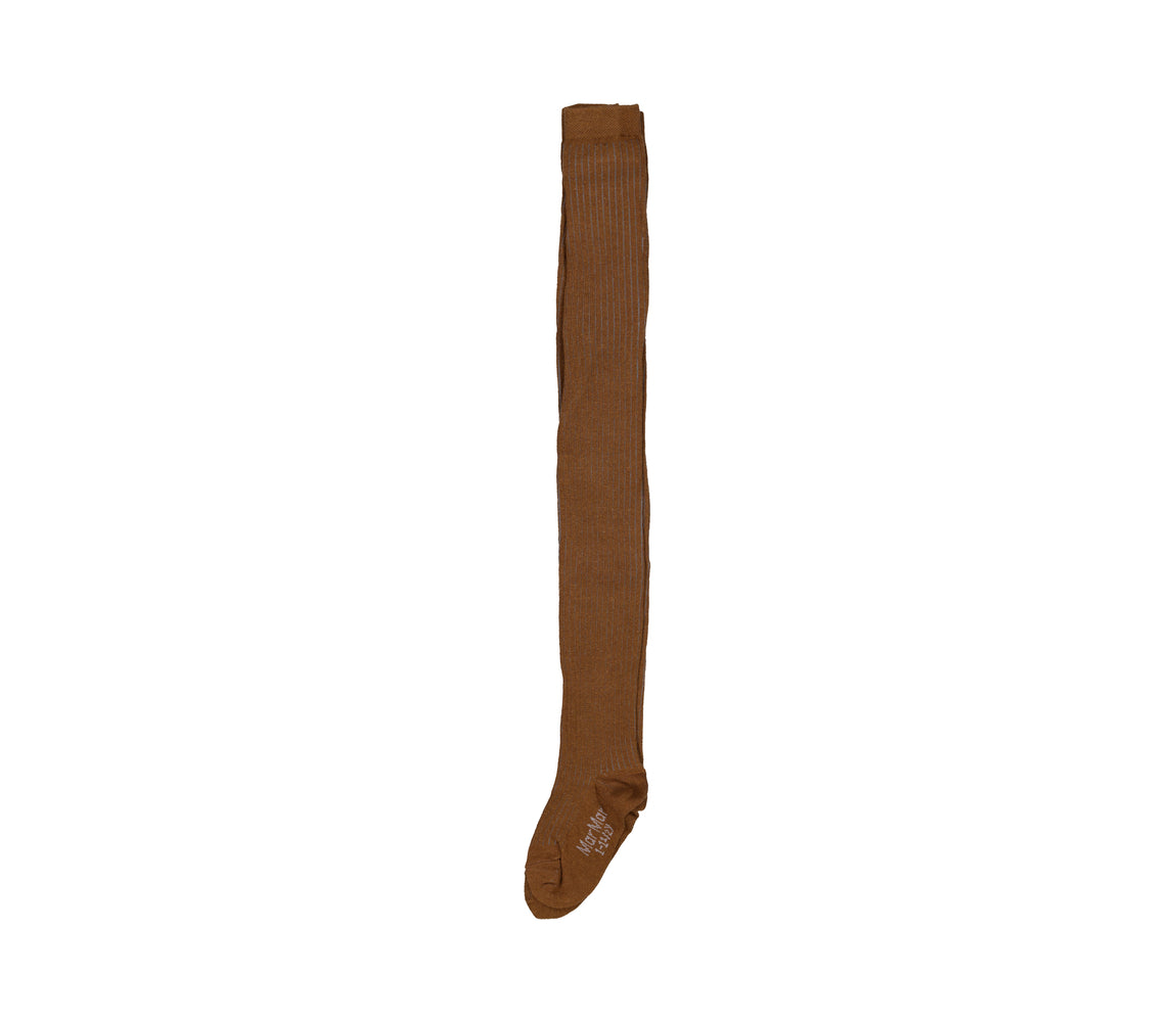 Tights with reinforced heel and toe, which are stockinette-knit under the foot. The tights in the color Earth have vertical understripes in gray.