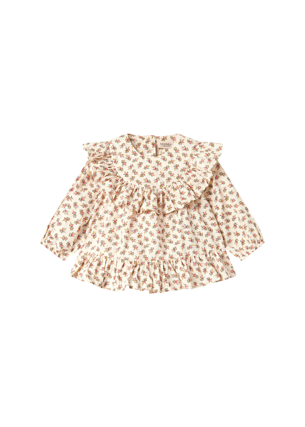 Long-sleeved and loose-fitting blouse for the little ones with a delicate hand-drawn floral print and beautiful ruffle details. The blouse has a button closure at the back and is both comfortable, light and airy to wear.