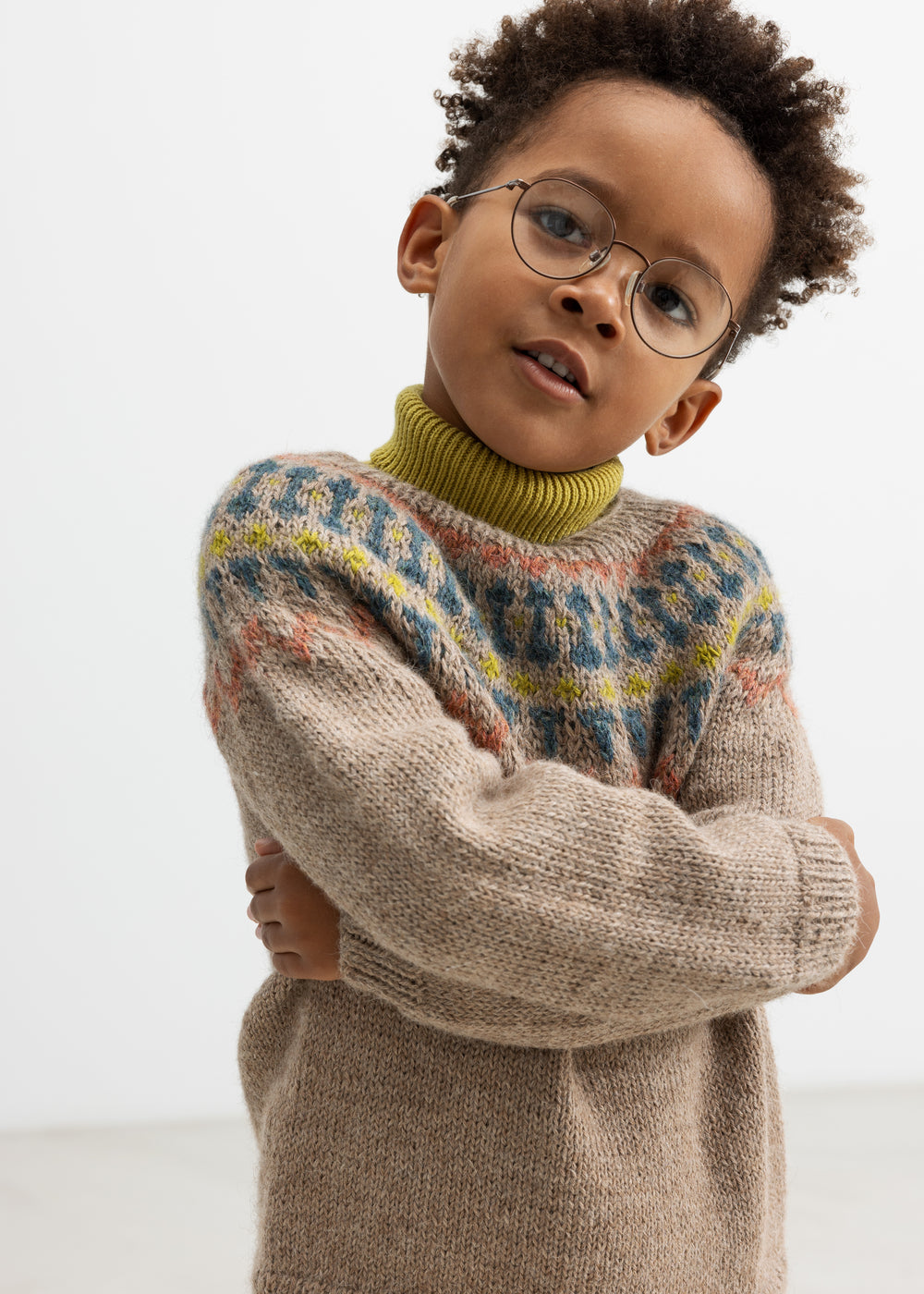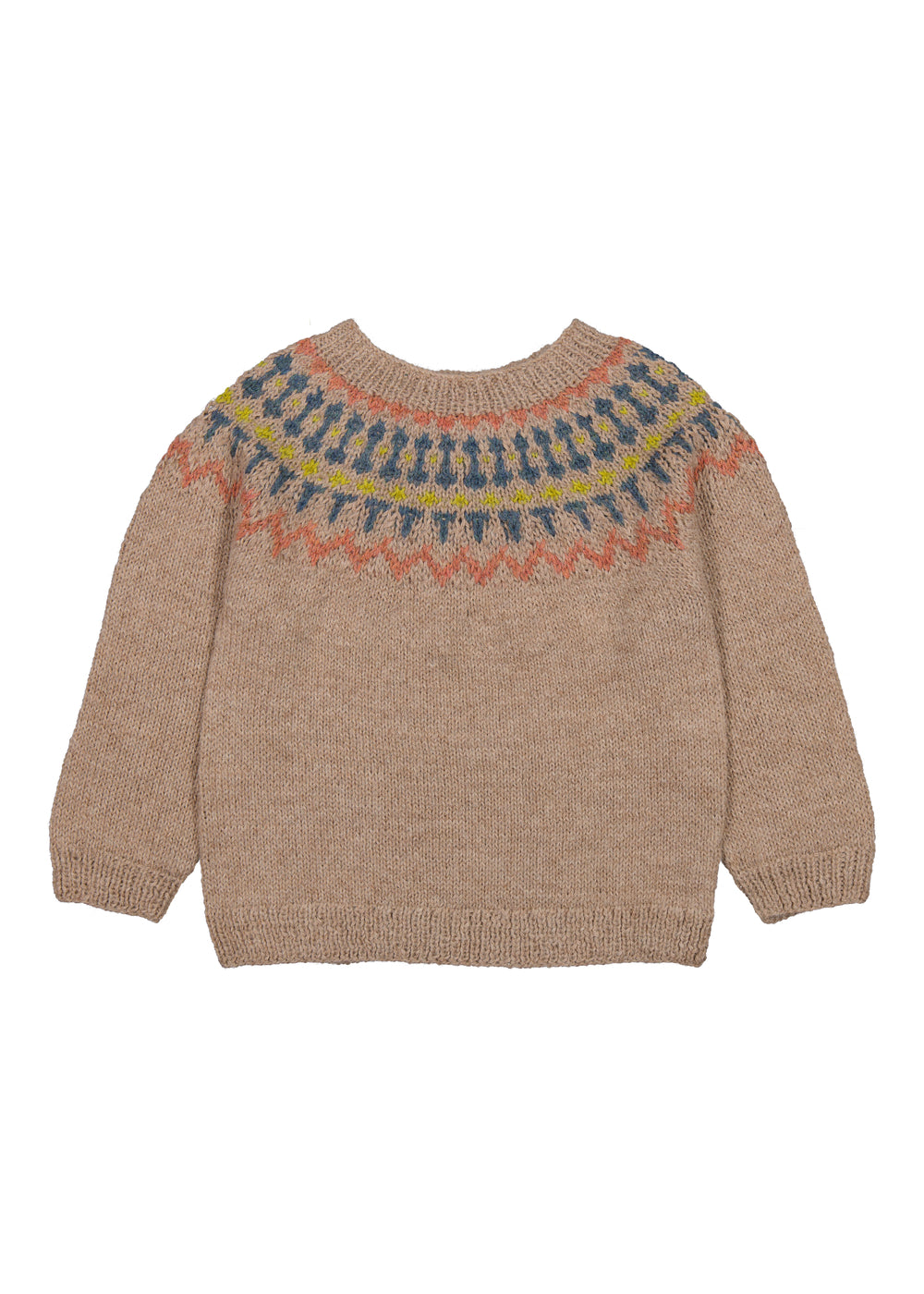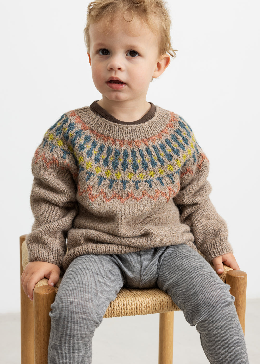 Hand-knitted alpaca blouse with a beautiful pattern for the little ones. The alpaca blouse is home-knitted by Aymara women - the indigenous people from the Bolivian Andean region. Each piece is therefore completely unique as it is handmade by different women. The blouse is produced in Bolivia.